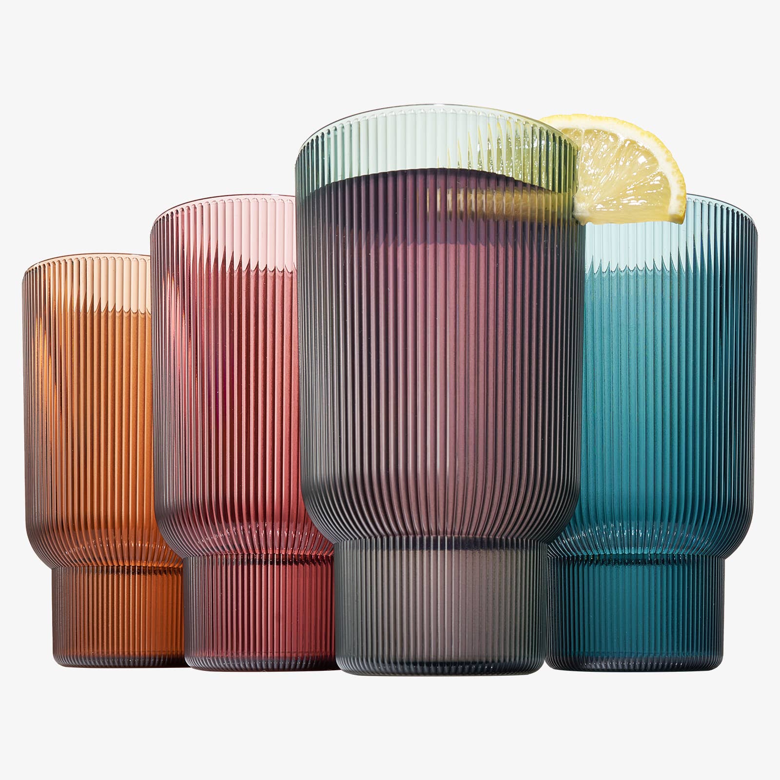 Bicchieri Highball in acrilico riutilizzabili a costine, set di 4 all'ingrosso