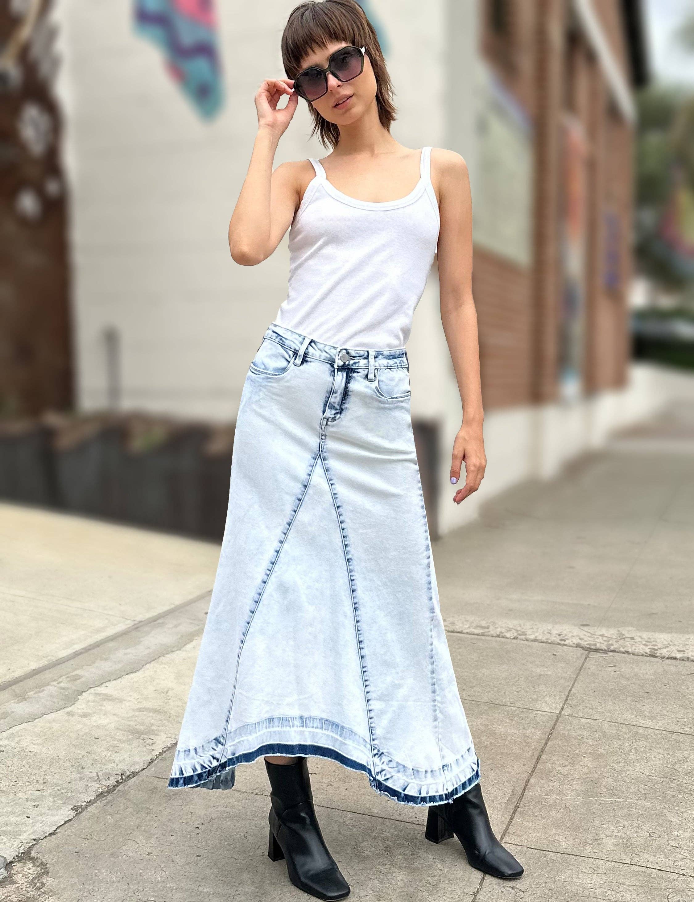 Gonna vintage con orlo asimmetrico lavato e ricamo floreale, perché la dolcezza è sempre un lavoro!