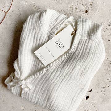 Il nostro accappatoio in mussola realizzato al 100% in cotone è morbido e rende ogni esperienza di bagno davvero speciale. Dopo il bagno a casa, in viaggio in piscina o al mare: l'accappatoio UNIQUE LOVE promette un'atmosfera piacevole per tutti i piccoli esploratori. DETTAGLI · Effetto Crincle · tessuto particolarmente assorbente e morbido · tre diverse misure per bambini fino a 6 anni · Cappuccio a punta con dettaglio nappina · Comodo da indossare e buona tenuta grazie a due cinture cucite MATERIALI E CURA · Tessuto 100% mussola a quattro strati (puro cotone) · tessuto di mussola fine che diventa ancora più morbido quando viene lavato · lavabile a 40° · asciugare in asciugatrice solo a basse temperature · Può essere stirato a fuoco basso, altrimenti l'effetto increspato scomparirà TAGLIA · 1-2 anni (lunghezza: 58 cm, manica: 33 cm) · 3-4 anni (lunghezza: 62 cm, manica: 35 cm) 5-6 anni (lunghezza: 69 cm, manica: 40 cm)