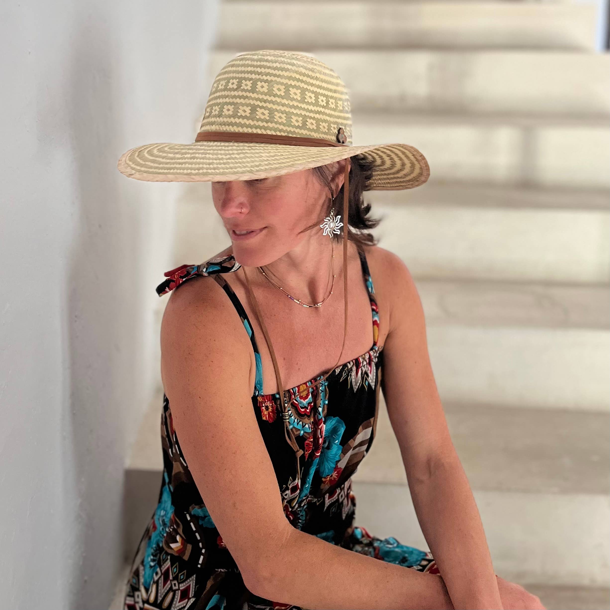 Realizzato in Messico Paglia di palma Cinturino regolabile per il mento Taglia unica adatta alla maggior parte--circonferenza di 22,75" con una tesa di 3,5" Pulire con acqua L'accessorio perfetto per un guardaroba estivo. Il nostro cappello da sole sostenibile ha una tesa larga che aiuta a proteggere dai raggi UV. Realizzato con materiali naturali ed ecologici intrecciati in piccole trecce e cuciti insieme. Il nostro cappello da sole Anya è realizzato a mano con paglia di palma naturale. Il cappello da sole Anya è fatto a mano in un'azienda familiare di seconda generazione in Messico. Gli artigiani mantengono vive le tradizioni di tessitura secolari realizzando cappelli di paglia di palma per sostenere la loro attività familiare. Acquista regali sostenibili e cappelli da sole per donne su G and L Positive Goods. Come vengono realizzati i cappelli da sole sostenibili in paglia di palma? I nostri cappelli da sole e fedora ecologici sono realizzati al 100% con foglie di palma secche biologiche coltivate in Messico. I cappelli in materiale naturale sono intrecciati a mano con fibre vegetali, ammorbiditi dal vapore e poi modellati su un blocco per cappelli.