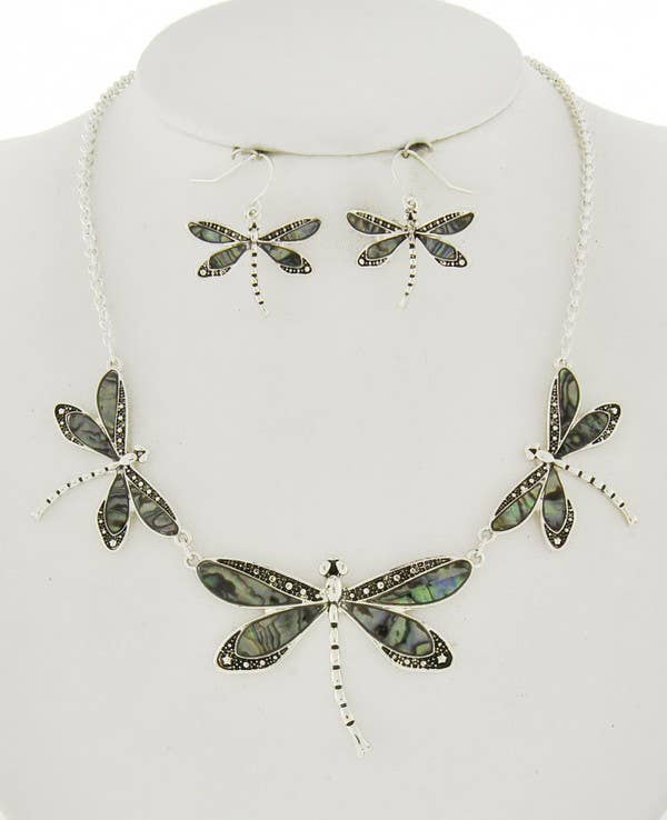 Set di collana e orecchini in vero abalone stile bavaglino Lunghezza: 17" + EXT 2" Orecchino: 1 1/2" Caduta: 1" Chiusura dell'orecchino: gancio da pesca Placcato in argento Materiale: zinco, guscio, abalone Senza piombo, nichel e cadmio