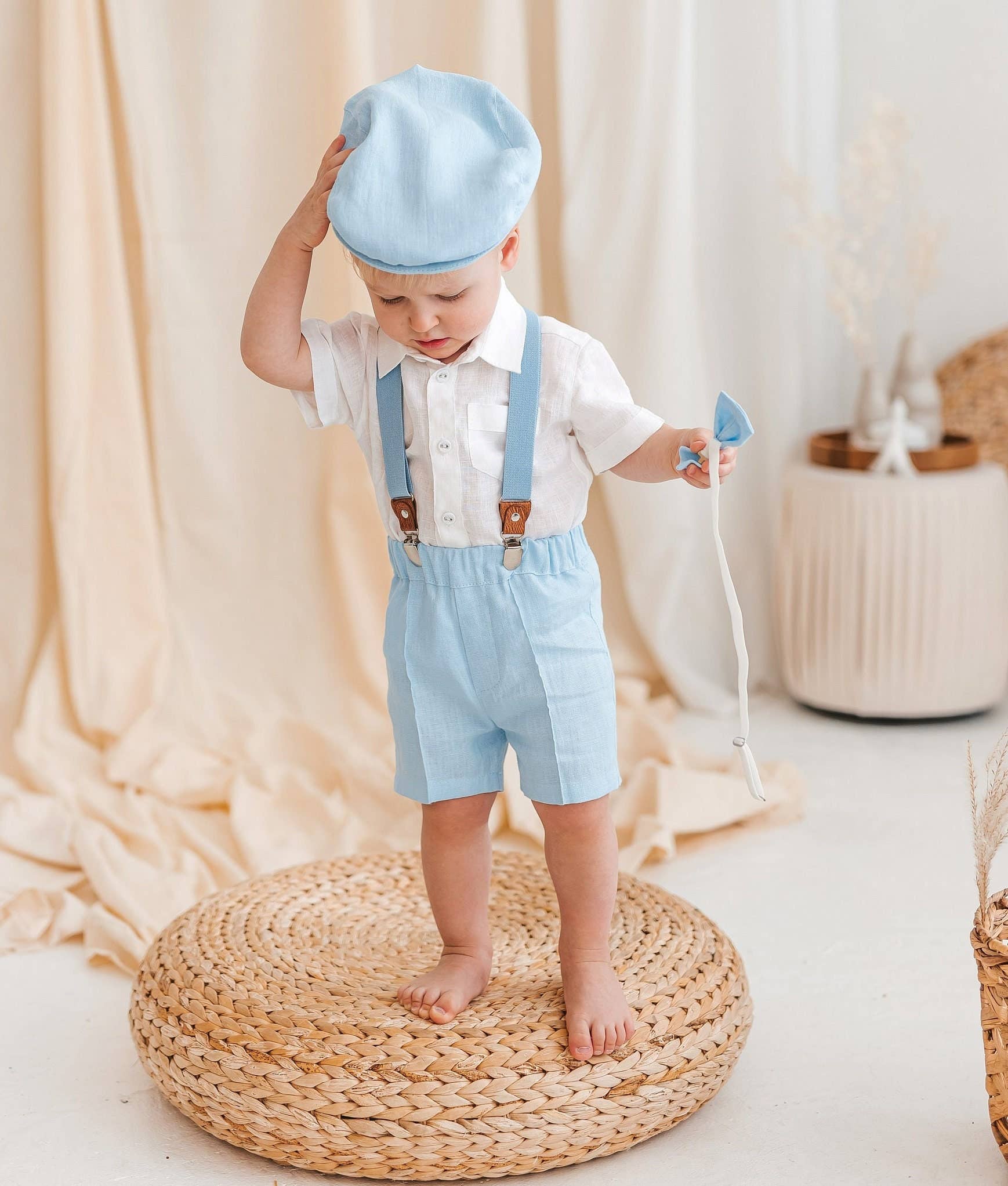 Il nostro completo in lino per bambini, realizzato a mano con lino di altissima qualità, morbido e confortevole. Il completo comprende: - Camicia bianca in lino con bottoni - Pantaloni in lino - Papillon in lino La camicia è slim fit, molto morbida e decorata con un elegante papillon in lino (a scelta tra vari colori). Il tessuto è morbido, con bottoni sul petto; la chiusura è profonda con bottoni, la cerniera è cucita lateralmente per facilitare la vestizione. ❤ Taglie Consulta la tabella delle misure nelle immagini. ❤ Materiale 100% lino Decorazioni: lino e bottoni rivestiti in lino. ❤ Colori disponibili: Camicia: bianca Pantaloni: bianco neve; sabbia estiva; grigio naturale; onda blu; blu profondo; rosso papavero; rosa baby o rosa cipria Papillon: bianco neve; sabbia estiva; grigio naturale; onda blu; rosso papavero; rosa baby o rosa cipria ❤ Spedizione * Assicurati che l'indirizzo di spedizione sia aggiornato nel tuo account Etsy, poiché sarà quello utilizzato per inviare l'ordine.