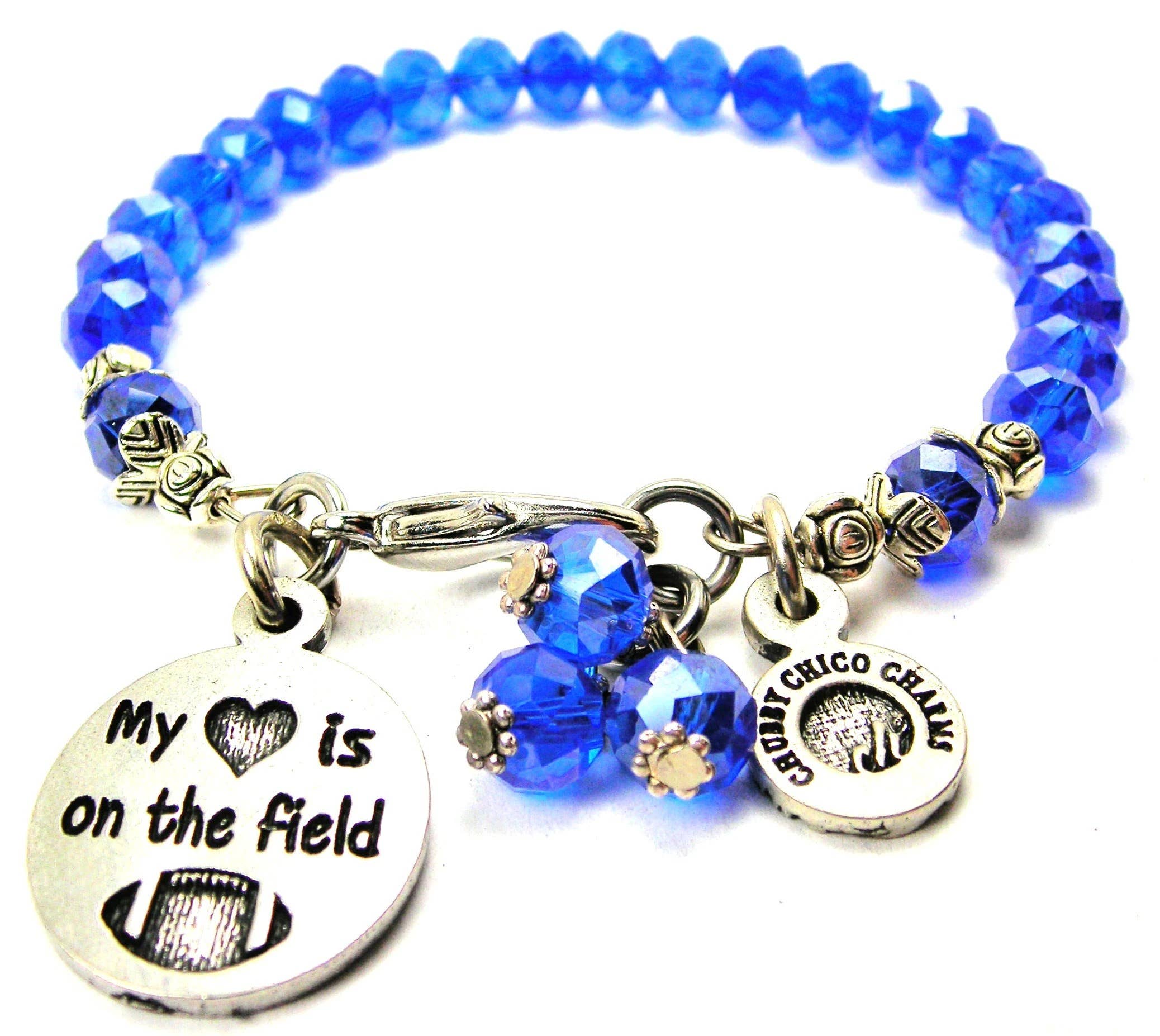 Un braccialetto realizzato a mano ha un elegante pendente di cristallo, un cuore aperto e un cuore soffiato. Il braccialetto presenta anche un ciondolo in peltro americano al 100% e il nostro braccialetto di dimensioni regolari è espandibile da 17,8 cm a 20,3 cm. Questi bellissimi braccialetti sono il regalo perfetto per te o per una persona cara per ogni occasione.