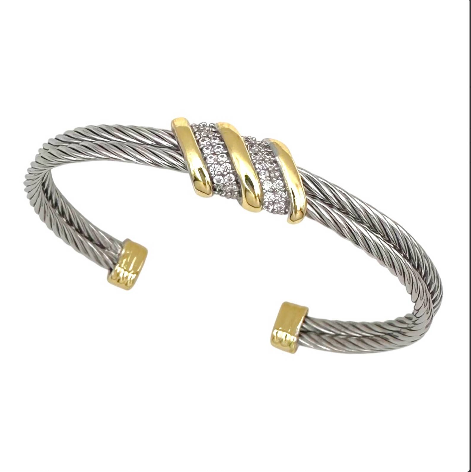 Splendido braccialetto di design Bellissimo set di zirconi a taglio completo, stile canale Stazioni Gold x Chiusura a scrocco con chiusura di sicurezza Placcato rodio Si adatta bene a polsi medio-grandi 6-8 Sono disponibili orecchini e collana abbinati