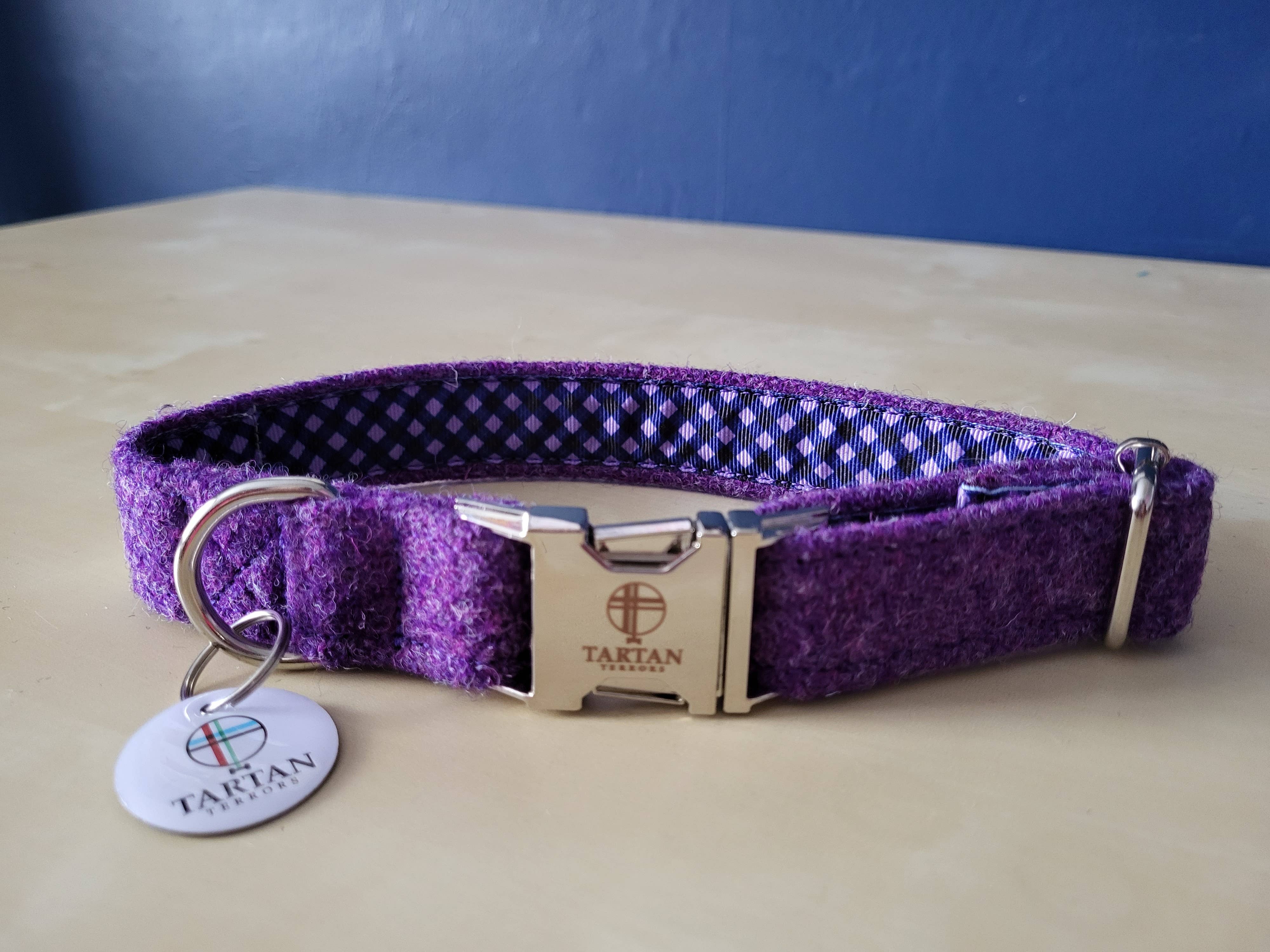 Questi collari, guinzagli e papillon per cani sono davvero ben fatti e popolari tra i nostri clienti. C'è una vasta gamma di tartan disponibili e il servizio è eccellente.