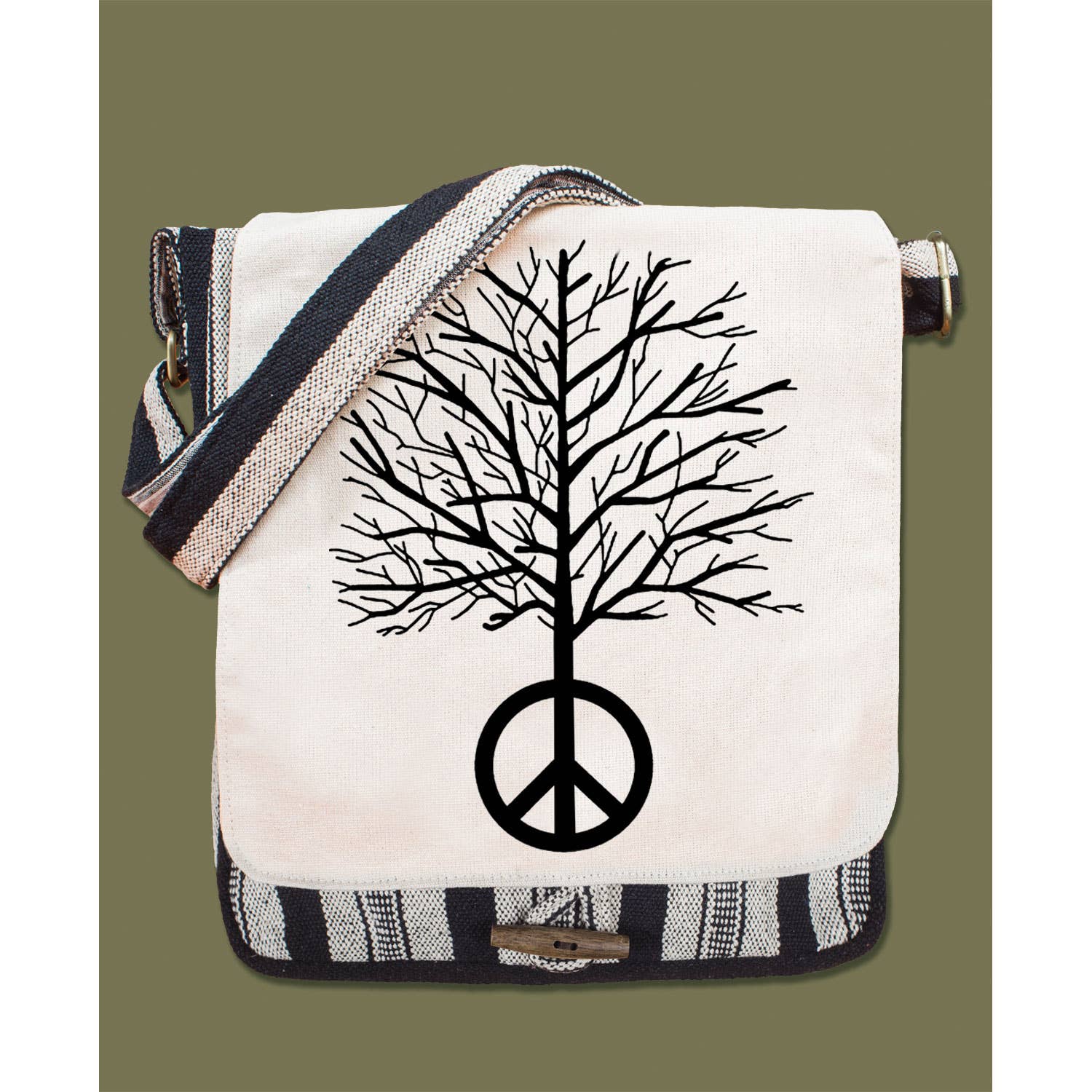 Borsa Hippie - Borsa a tracolla in tela Peace Tree