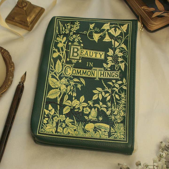 Aggiungi una celebrazione del teatro tradizionale alla tua collezione di cancelleria o trucco. Questa splendida borsa verde presenta il classico dramma di Shakespeare, Sogno di una notte di mezza estate. Presenta un dipinto di una Tatiana addormentata di Arthur Rackham. Realizzata in pelle vegana, questa borsa è perfetta da portare in borsa o da lasciare sulla scrivania. Il retro della borsa è inciso con la citazione poetica "L'amore non guarda con gli occhi, ma con la mente, e perciò Cupido alato è dipinto cieco".