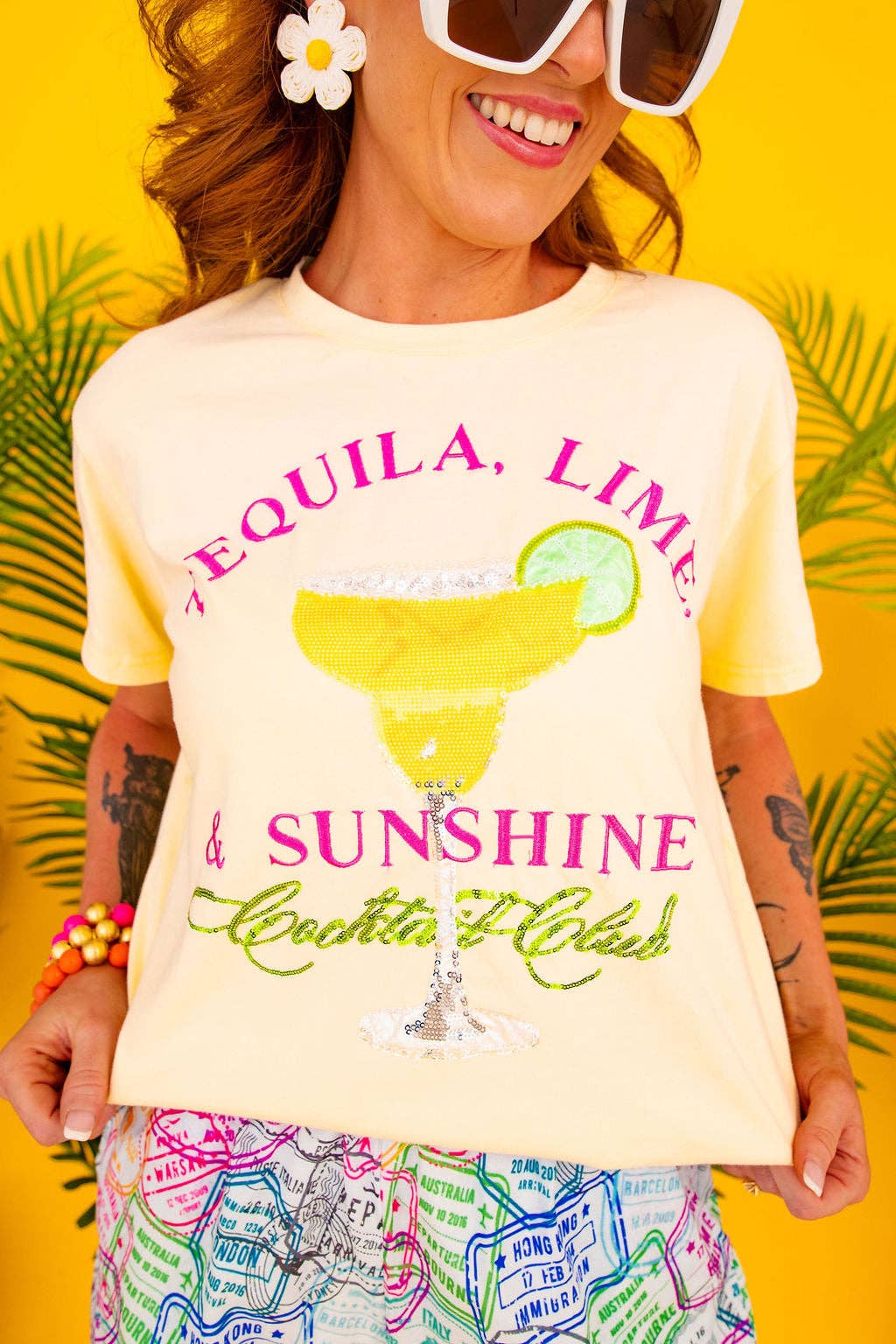 DETTAGLI: * T-shirt morbida di colore rosa pallido con motivo "Cosmopolitan" pesantemente decorato con un Cosmo Martini "Cocktail Club" sotto * Caratteristiche: applicazioni in tessuto, paillettes, perline e ricami -- molto dettagliata e bellissima! * Materiale: 100% Cotone Disponibile in 6 taglie: * Misure X Small (consigliato per taglia 0): * Lunghezza: 23,7" * Busto: 40,4" * Misure Small (consigliato per taglia 2/4): * Lunghezza: 24,5" * Busto: 42" * Misure Medium (consigliato per taglia 6/8): * Lunghezza: 25,3" * Busto: 44,4" * Misure Large (consigliato per taglia 10/12): * Lunghezza: 26,5" * Busto: 46,8" * Misure X Large (consigliato per taglia 14): * Lunghezza: 27,7" * Busto: 49,8" * Misure XX Large (consigliato per taglia 16+): * Lunghezza: 29,2" * Busto: 52,8"