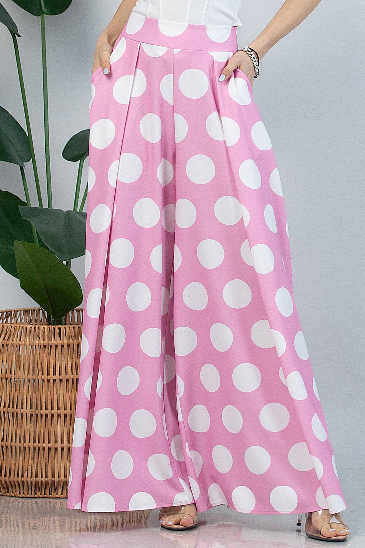 Ancora nessuna recensione per P919-5478A-Pantaloni Palazzo a Gamba Larga a Pois Cioccolato Lidia.