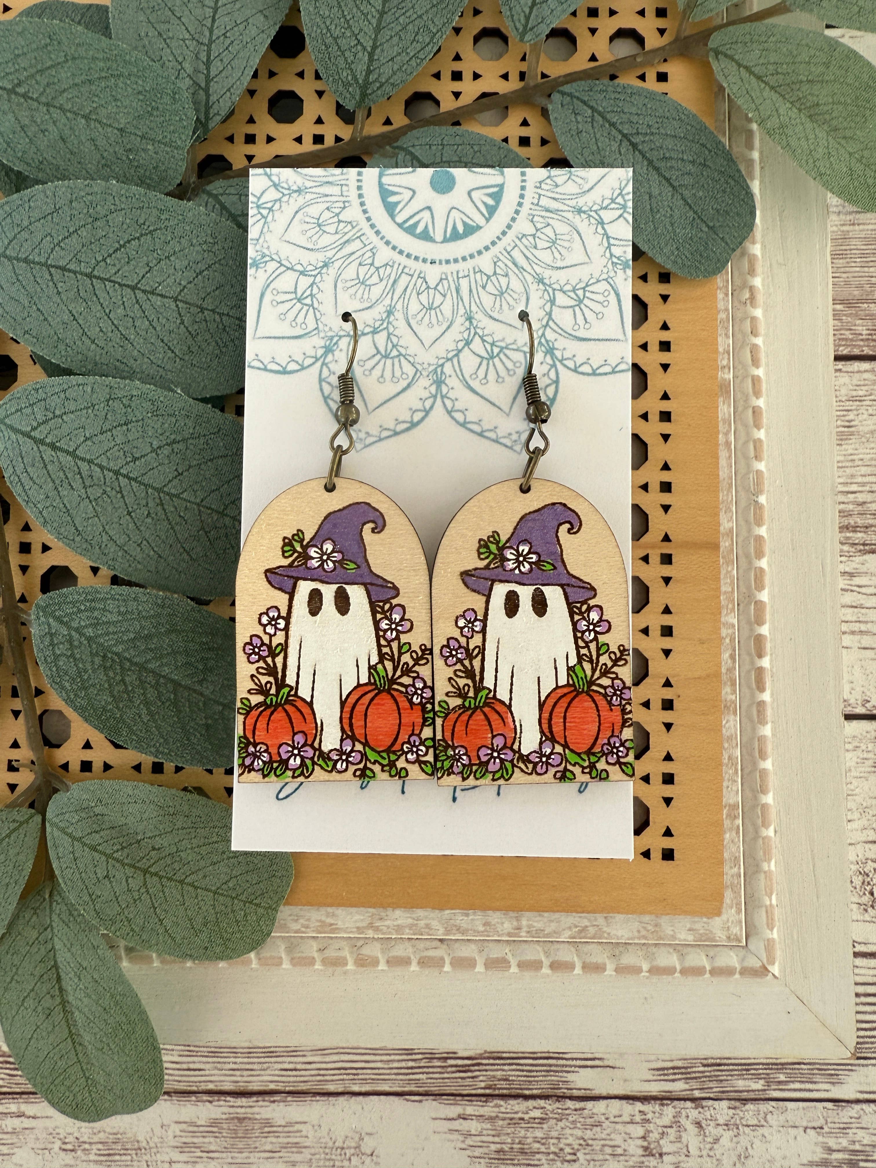 Orecchini in legno dipinti a mano leggeri con margherite boho.