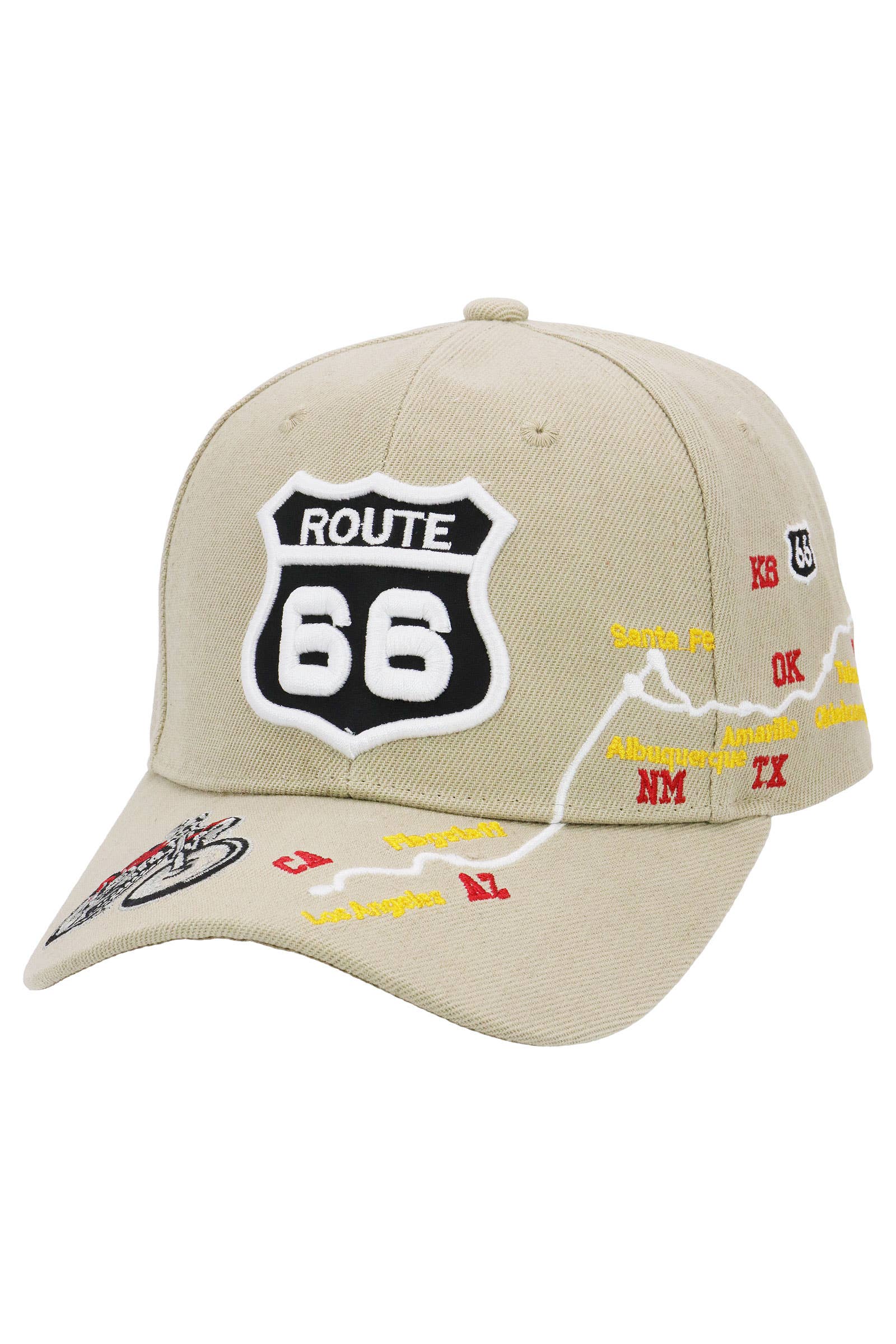 US Route 66 The Mother Road Logo Ricamato Berretto Classico in Acrilico con Risvolto - Dimensioni: 9" * 7.5" * 0.5" (Misurato appoggiato su una superficie) - Colori assortiti (4-Nero, 2-Blu Navy, 3-Grigio Melange, 1-Bordeaux, 1-Khaki, 1-Beige, possono variare) - 100% Acrilico