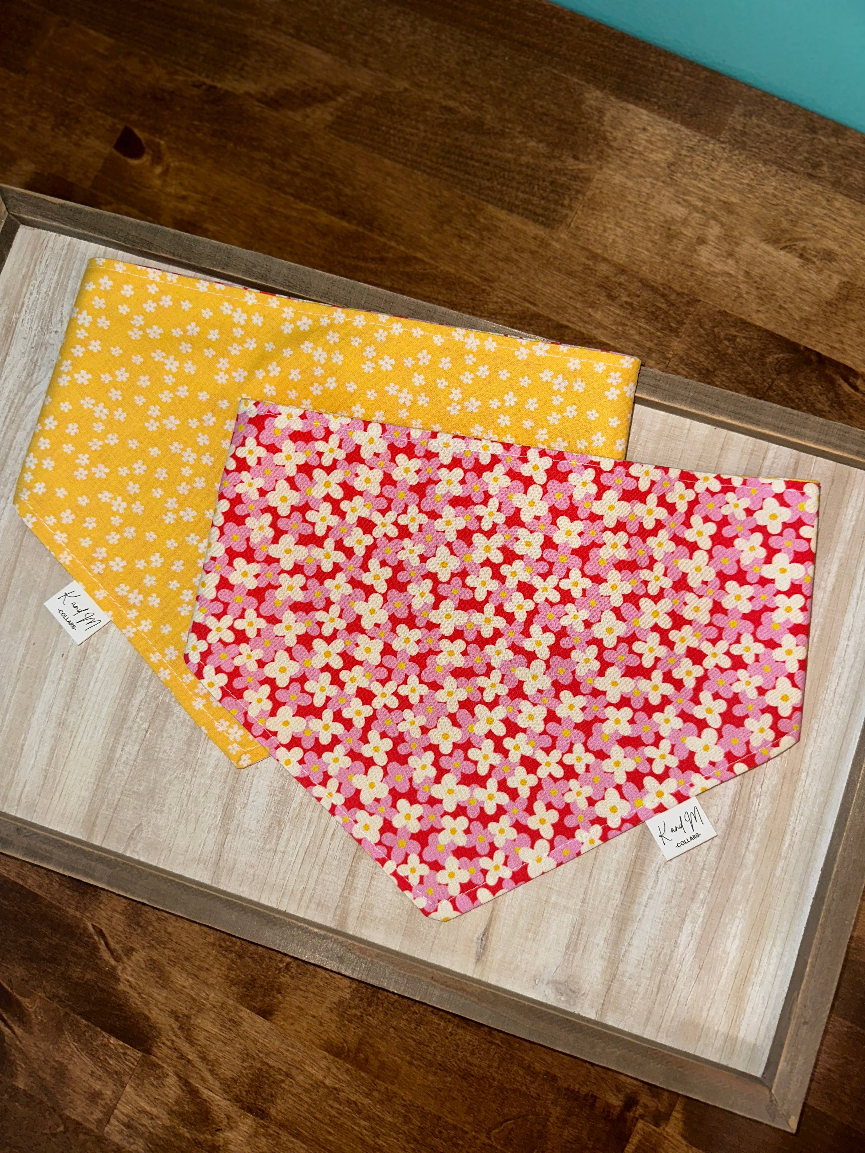 *** Con la chiusura di Joann's, il retro di tutti i bandana cambierà gradualmente. Farò del mio meglio per mantenere i retro simili a quelli elencati nelle foto e aggiornerò le immagini man mano che verranno realizzate con il nuovo retro. Se hai dubbi su come potrebbe essere il retro di un bandana, ti prego di contattarmi! Grazie mille per la comprensione durante questo periodo di cambiamento! *** Tutti i bandana sono fatti a mano da me per il tuo animale domestico! Tutti i bandana sono realizzati in 100% cotone e sono lavabili in lavatrice! Questo è un bandana con chiusura a scatto, ma se preferisci legarlo prima di chiuderlo, ti consiglio di scegliere una taglia più grande. Considera anche la peluria del tuo animale domestico quando scegli una taglia. Se un collare si adatta perfettamente al tuo cane a 17", ti consiglierei la taglia Media invece della Piccola perché 17" è il massimo per la taglia Piccola e vorrai un po' di spazio in più. Taglie: XS - fino a 13" S - fino a 17" M - fino a 21" L - fino a 25" se i bandana sono un po' troppo grandi: prendi le due estremità del bandana e avvolgile prima di chiuderlo. questo dovrebbe aiutare!