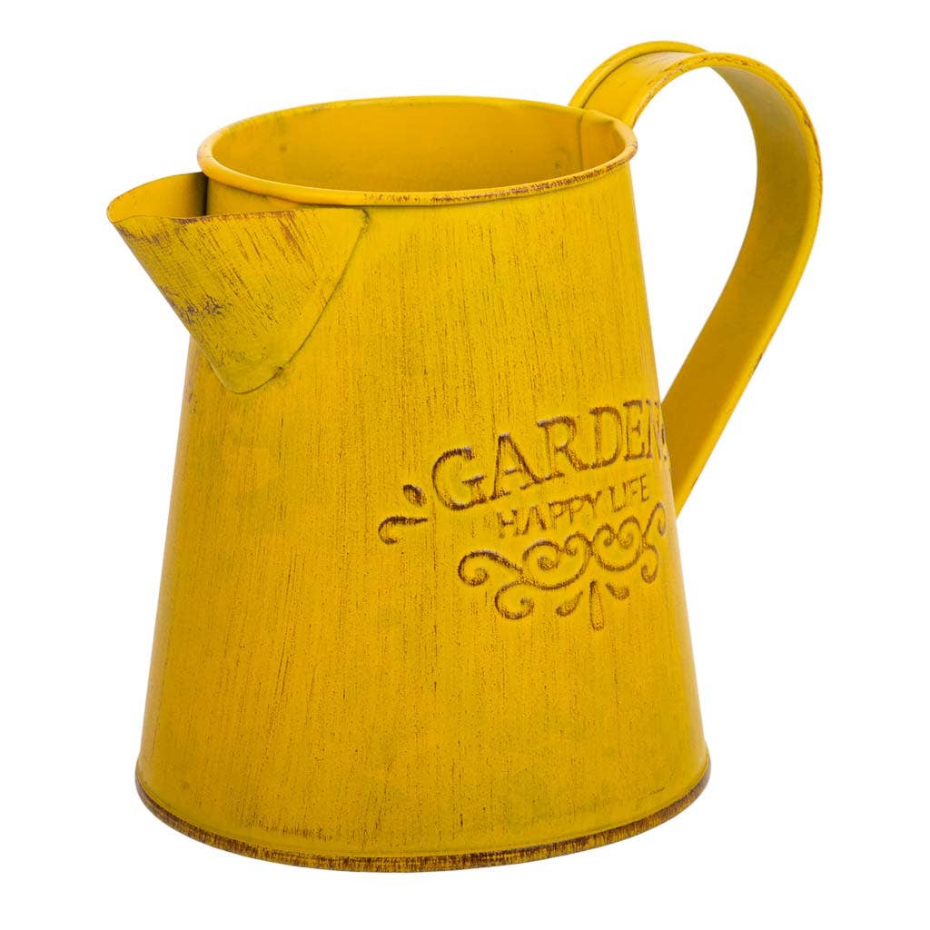 Cesto in metallo dal design rustico con manici laterali e decorazione "Flowers & Garden" sul davanti, ideale per uso da giardino o decorativo.