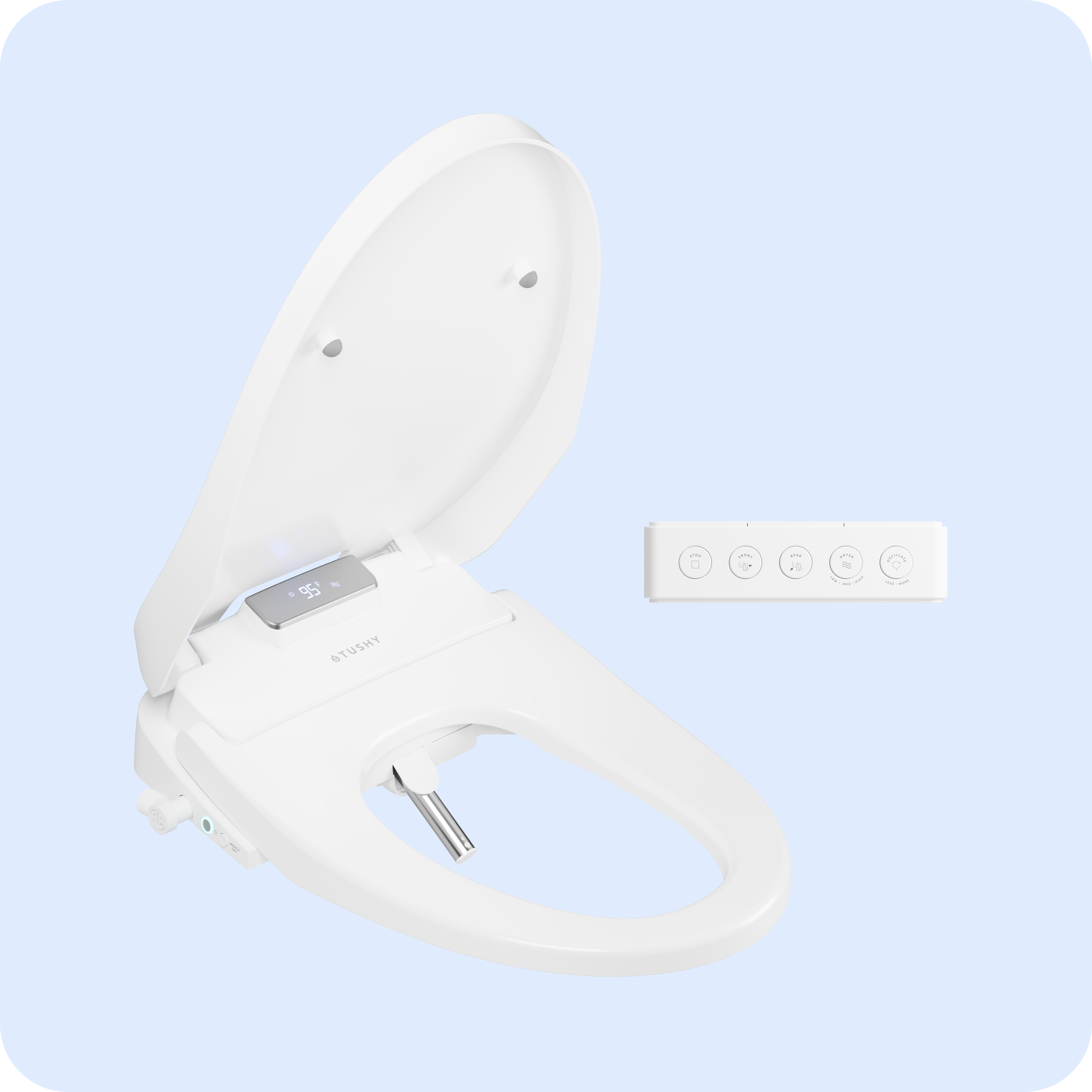Basato su quasi 1 milione di recensioni di persone reali, il TUSHY Classic 3.0 offre tutte le caratteristiche distintive di TUSHY con mega aggiornamenti. • Il nuovo ugello brevettato Self Cleaning SmartSpray™ si risciacqua prima e dopo ogni utilizzo per una pulizia migliore. Si ritrae automaticamente quando il Classic 3.0 è spento. • Installazione facile in 8 minuti e mezzo o meno sulla maggior parte dei WC standard. • Adattamento universale su quasi tutti i WC con fissaggi del sedile regolabili che fissano saldamente il tuo TUSHY tra la tazza del WC e il sedile. • Nuovo controllo della pressione dell'acqua, ora puoi scegliere da un flusso leggero a uno forte di acqua pulita. • Nuovo regolatore di precisione dell'ugello che ti dà il controllo per pulire il tuo sedere o la parte anteriore con un getto mirato.
