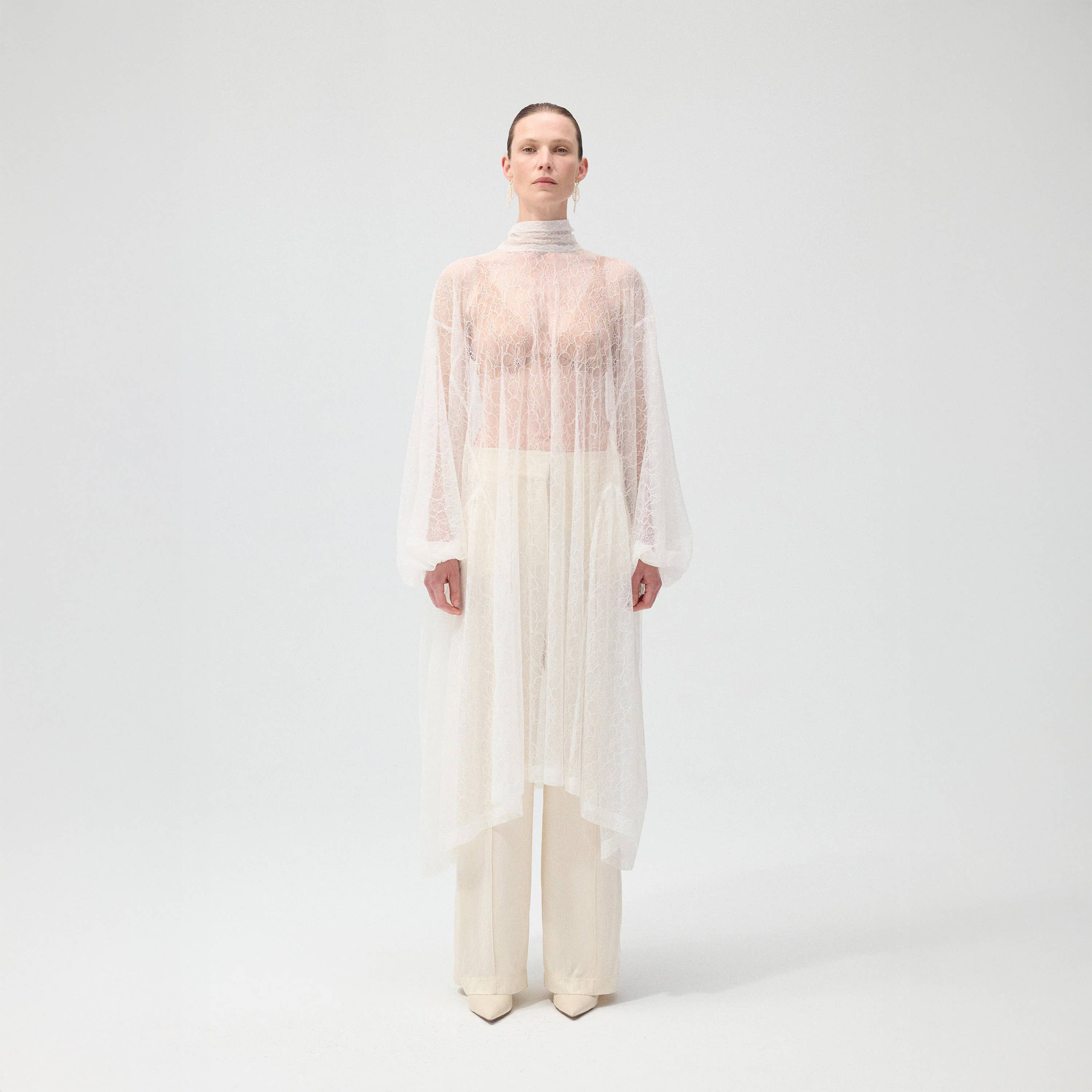 Edizione limitata. Abito kimono realizzato in satin leggermente luminoso con dettagli floreali in jacquard raffinato. Maniche voluminose, scollo a V pulito e cintura in vita regolabile per una silhouette sofisticata e senza sforzo. Colore: Aqua Composizione: 100% viscosa satinata, jacquard.