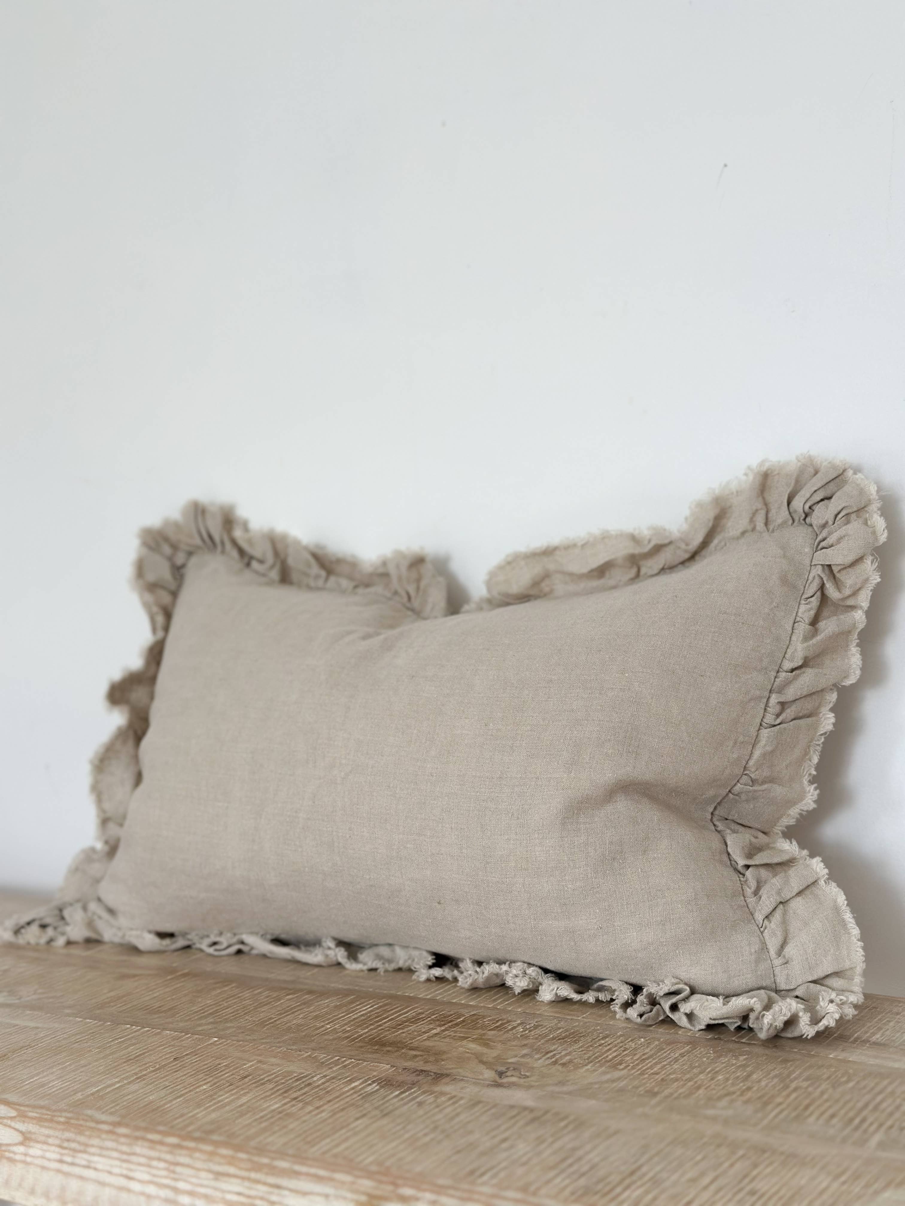 Solo fodera per cuscino Materiale: 100% lino stonewashed Dimensioni: 45 x 45 cm Istruzioni di lavaggio: lavabile in lavatrice a 30 gradi Colore: naturale e crema Bordo sfrangiato di 1 cm lungo i lati sinistro e destro