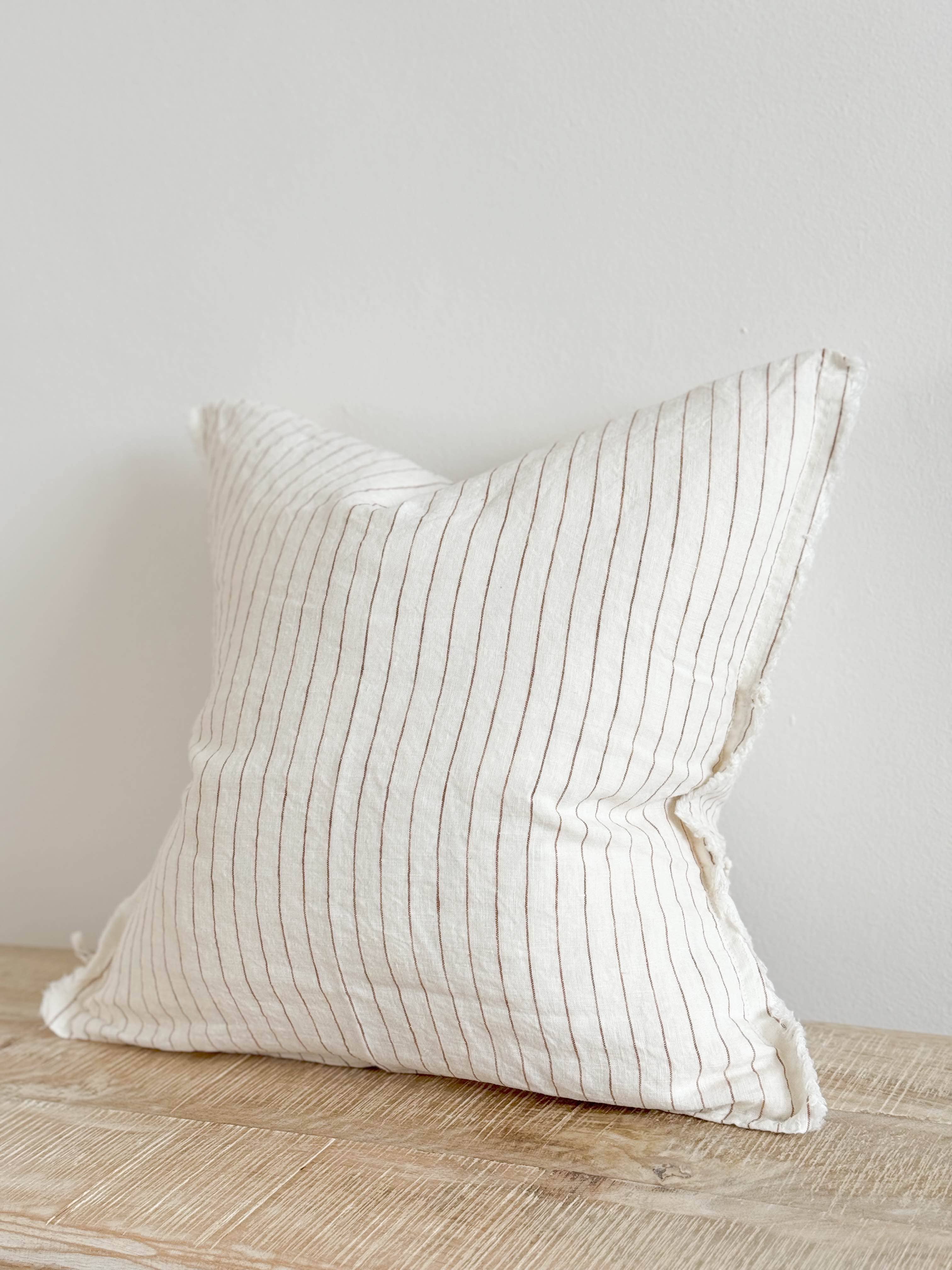 Fodera per cuscino Esmee in lino 45×45 — Bordo sfrangiato naturale a quadretti