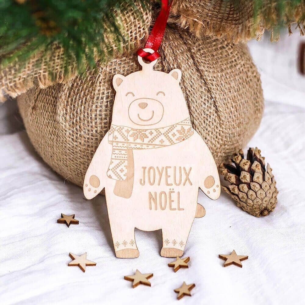 Questa è la decorazione natalizia per il primo Natale del bambino, realizzata in legno di betulla a forma di palla di Natale. Incisa con la scritta « Mon premier Noël » e un adorabile disegno di una renna. Personalizzata in Francia. È una decorazione natalizia personalizzata da appendere al tuo albero! Un ornamento di tendenza che piace a tutti. Include un nastro rosso per poterla appendere subito. Dimensioni: 6,5 cm di diametro. Materiale: legno di betulla. Spessore: 3 mm.