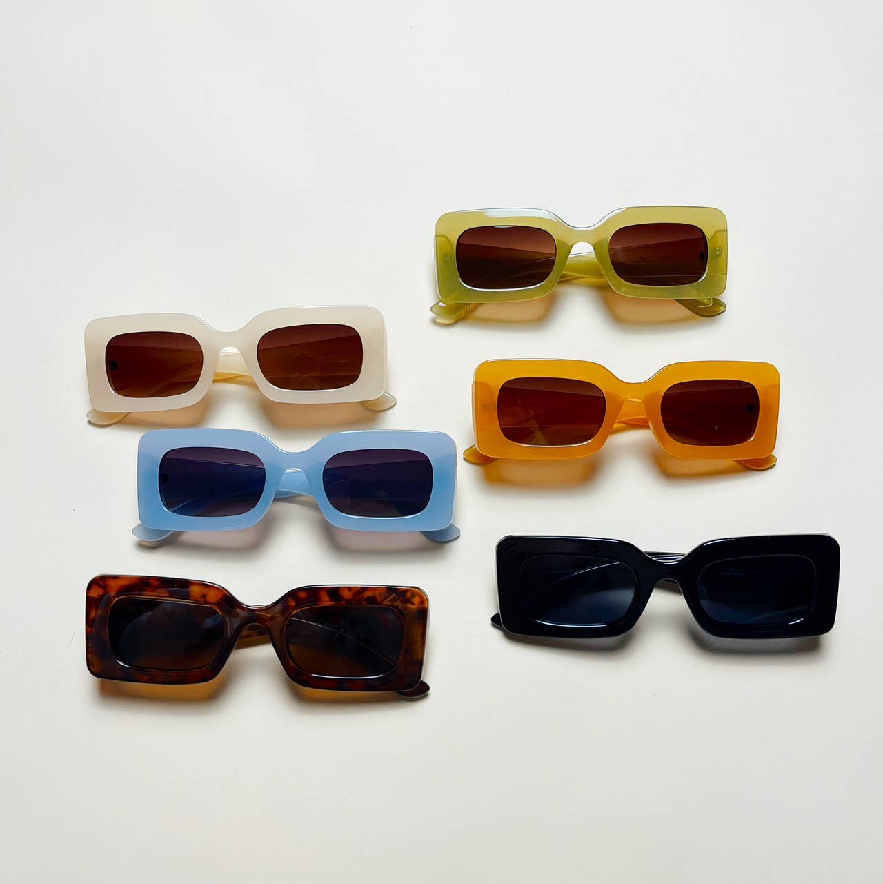 Occhiali da sole rettangolari da donna - Lente in policarbonato. - Lente resistente agli urti. - Protezione UV400 contro i raggi ultravioletti UVA e UVB - Montatura e lenti assortiti per dozzina. -Dimensioni: 5,75 «x 2"