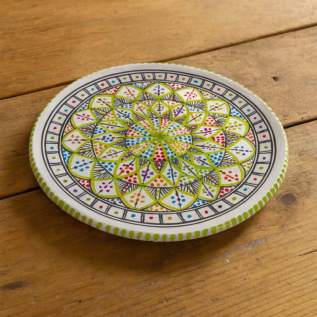 Immergiti nella ricchezza dell'artigianato tunisino con questa ciotola in ceramica decorata a mano. Ogni pezzo è unico, riflettendo l'abilità e la passione degli artigiani tunisini con dettagli intricati e colori vivaci. Questa ciotola di 13 cm di diametro è perfetta per servire salse, spezie, zuppe, o aperitivi, aggiungendo un tocco di eleganza esotica a qualsiasi tavola. La sua dimensione compatta e la profondità sono ideali per porzioni individuali, facendo di ogni presentazione un momento speciale.
