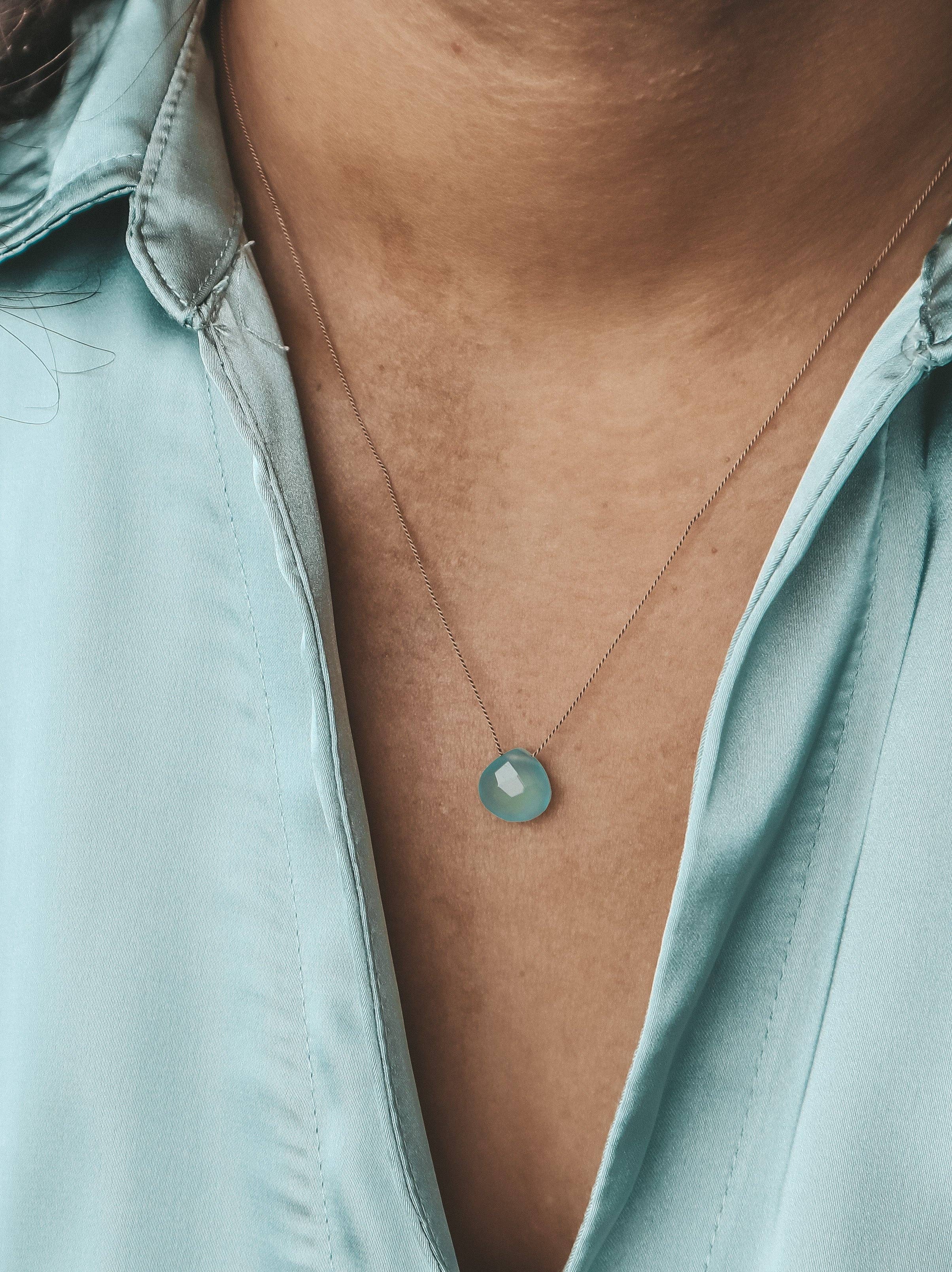 Collana con cordino in seta e opale rosa, pietra del mese di ottobre