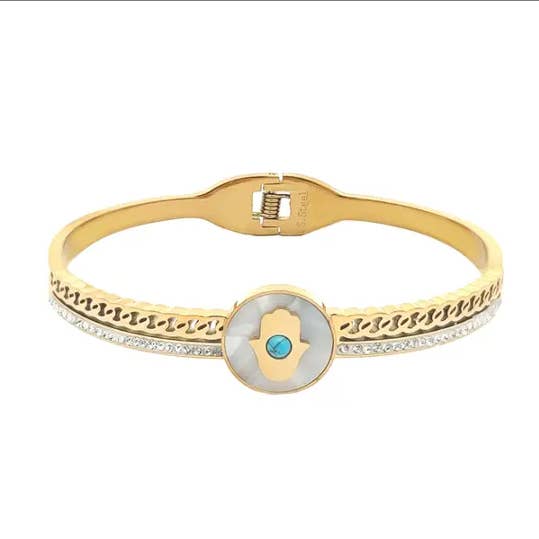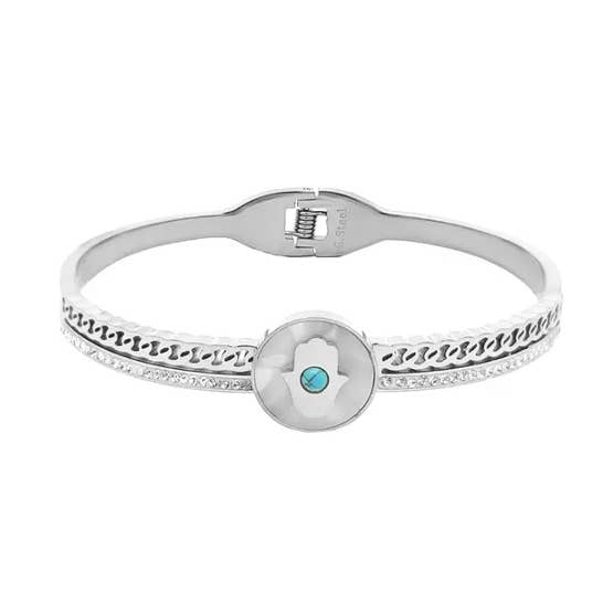 Materiale : Acciaio Chirurgico Inox 316L E Strass Diametro : 60mm Spessore : 4mm PROGETTATO PER ESSERE CONFORTEVOLE E FACILE DA INDOSSARE I nostri prodotti sono realizzati in conformità ,nel pieno rispetto delle normative vigenti. Senza nickel, senza piombo e senza cadmio.