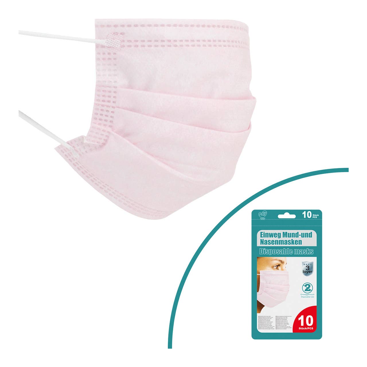 Maschera per bocca e naso, confezione da 10, con elastici per le orecchie, tessuto non tessuto 100% polipropilene PP, a 3 strati, nero Materiale: plastica Colore: nero Scheda di sicurezza secondo GPSR: https://nextcloud.wurm.com/apps/psds/Documents/10033386.pdf
