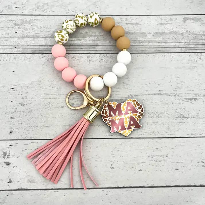Bracciale con perline di legno e silicone con portachiavi da polso all'ingrosso