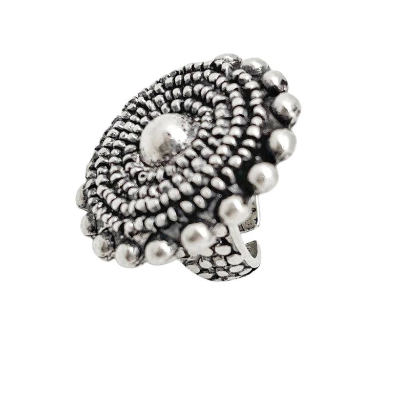 Anello con design a foglia d'argento color ambra cognac