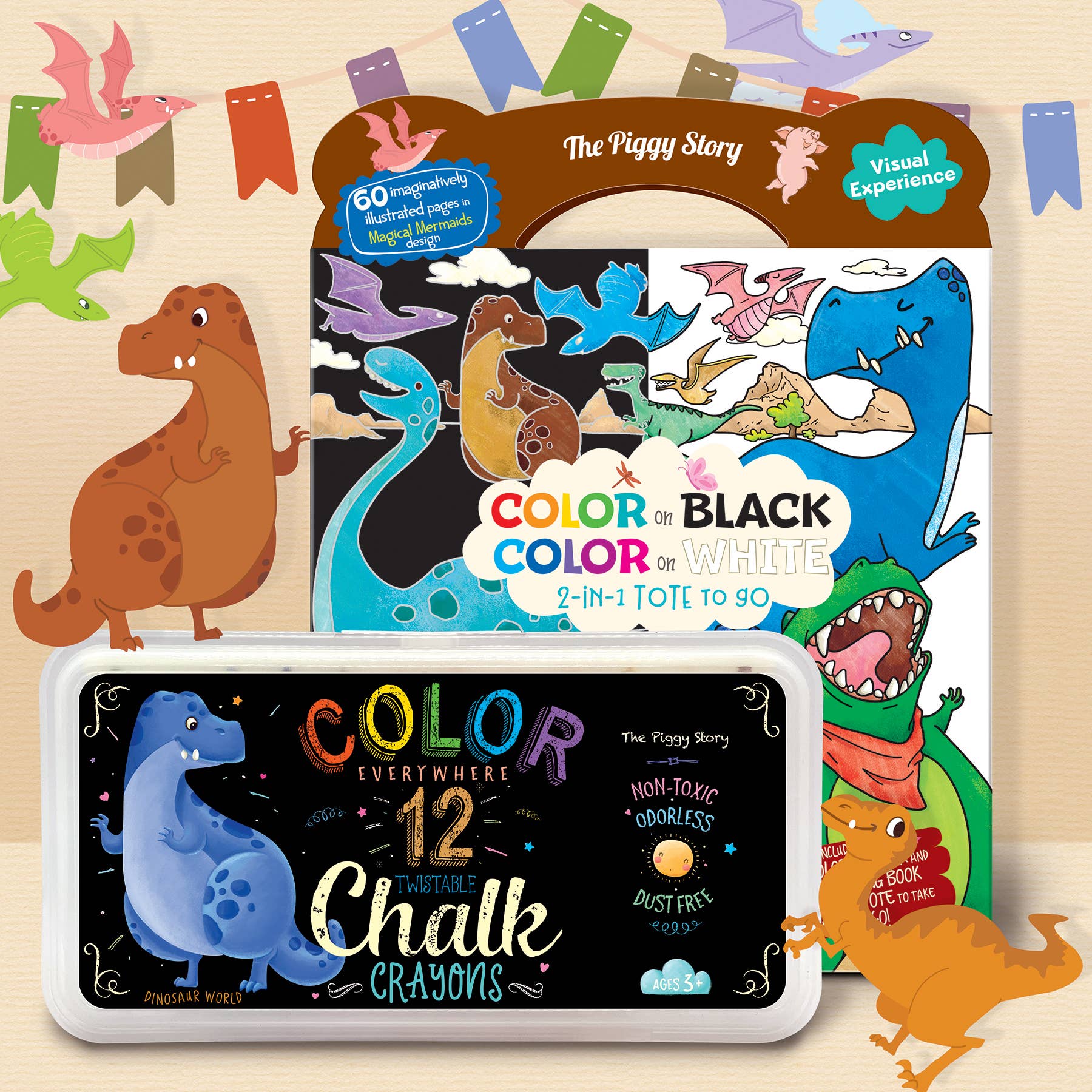 L'assortimento include: 18 pastelli gel glitterati e 18 colori su nero, colore su bianco 2 in 1 Display GRATUITO Pastelli gel glitterati Realizzati per mani piccole e grandi immaginazioni, questi versatili pastelli gel glitterati ispireranno creazioni con pastelli, pastelli e acquerelli! Colora con i pastelli ultra morbidi, sbava per creare un effetto pastello o usa un pennello bagnato per avere un effetto acquerello! I pastelli sono atossici, inodori e lavabili! Colore su nero, colore su bianco 2 in 1 Tote to Go Include 1 libro da colorare nero e 1 libro da colorare bianco in un'adorabile borsa da portare sempre con sé! 60 pagine illustrate in modo fantasioso in ogni borsa! I libri da colorare affiancati offrono opportunità di apprendimento e divertimento! Sperimenta con i colori su sfondi in bianco e nero per un'esperienza visiva affascinante! *disegni inclusi nell'assortimento in base alla disponibilità Destinato ai 3 anni in su.