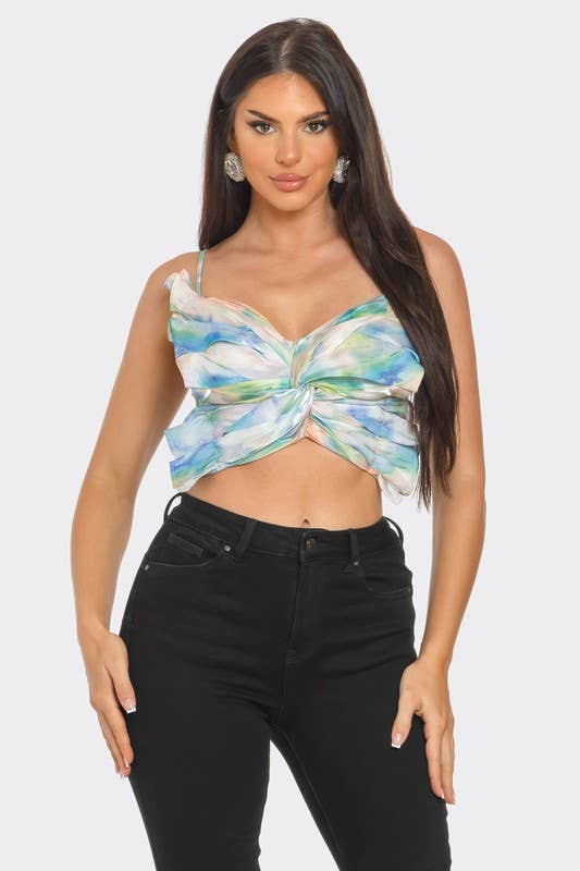 BTS12881 Top Corto a Rete con Strass a Specchio Lucido all'ingrosso