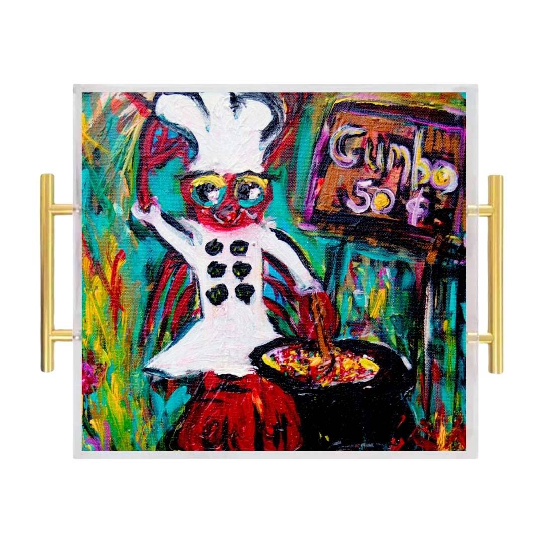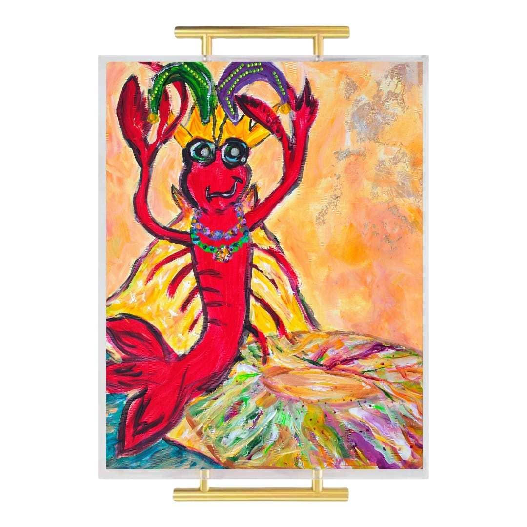 Migliora il tuo spazio con la bellezza di questo sorprendente vassoio in acrilico, con l'opera d'arte «Hanging Out» dell'artista della Louisiana Valerie Marze! Realizzato pensando alla versatilità, questo vassoio in acrilico è il compagno perfetto per servire, abbellire il tavolino da caffè, accentuare il bancone della cucina o semplicemente fungere da accattivante accento decorativo per la casa. Migliorando l'atmosfera del tuo spazio abitativo, la nostra linea di vassoi va oltre l'utilità per infondere un senso di eleganza e stile artistico nella tua casa. La grafica è stampata con precisione sul retro del vassoio, garantendo una superficie di servizio adatta agli alimenti e resistente all'acqua. Tutti i nostri vassoi sono meticolosamente progettati e stampati a Shreveport, La, incarnando un impegno per la qualità e l'artigianalità. 11" X 14" con manici in ottone. Pulire con un panno morbido, con sapone e acqua tiepida. Evitare di strofinare o usare prodotti chimici aggressivi. Non mettere in lavastoviglie. Parole chiave: stoviglie, servizio, salumi, arte, opere d'arte, martedì grasso, carnevale, New Orleans, NOLA, parata