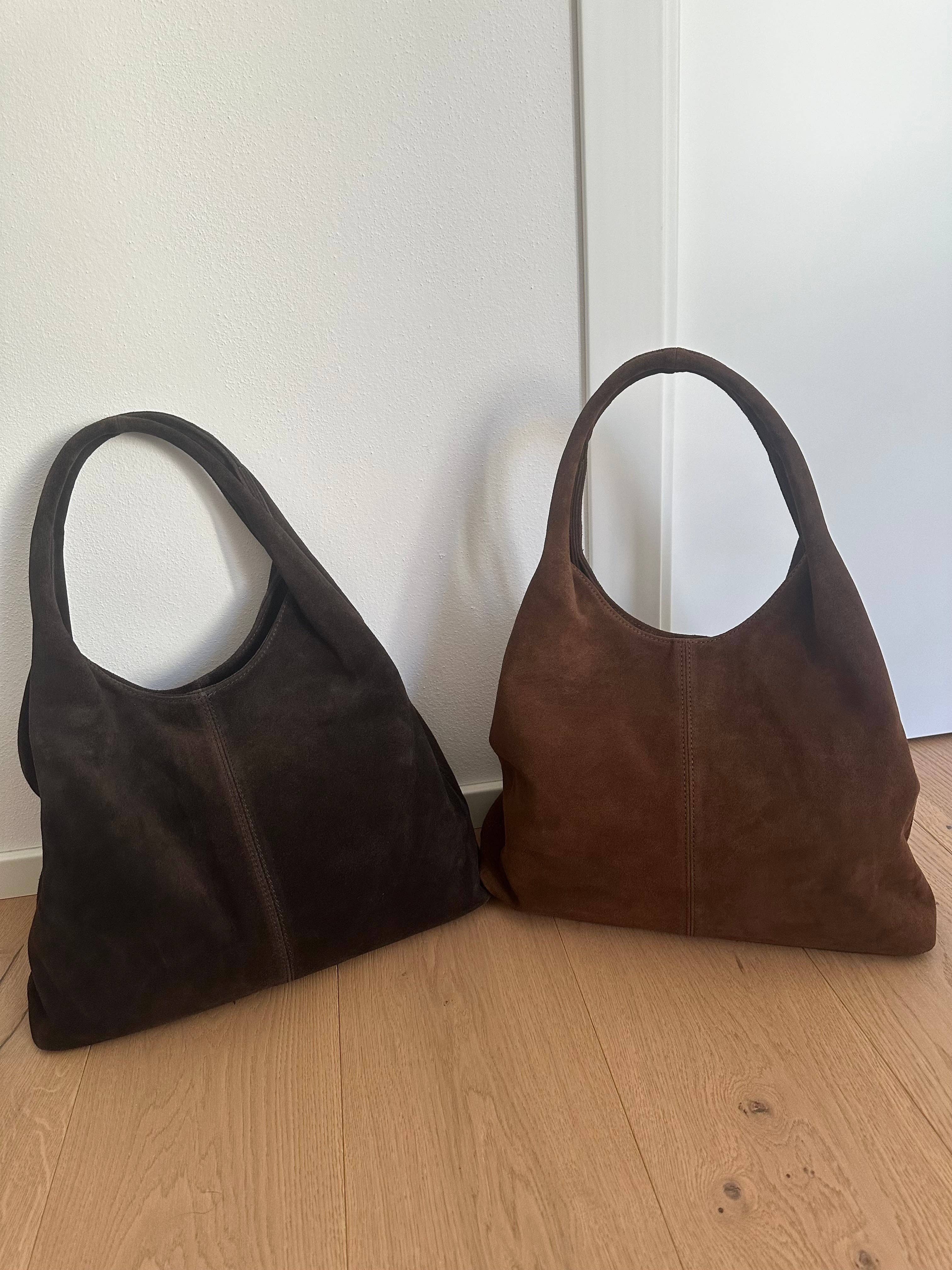 Hobo bag in Vera pelle scamosciata Made in Italy. Semplice minimal ma sempre di tendenza, questa hobo bag é perfetta per essere usata come borsa da tutti i giorni da abbinare a un look sportivo o anche con degli stivali texani, regalando un tocco particolare ma rimanendo leggera, comoda e capiente. Realizzata in Italia in pelle scamosciata morbida, compresa una pochette al suo interno, sempre in pelle scamosciata. Chiusura a cerniera. MISURE: altezza con manico 53cm / 20,86” lunghezza base 31cm / 12,20” spessore base 18cm / 7,08” altezza senza manico 30cm / 11,81”