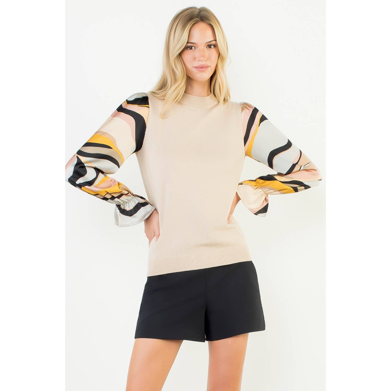 Abito testurizzato con maniche a sbuffo