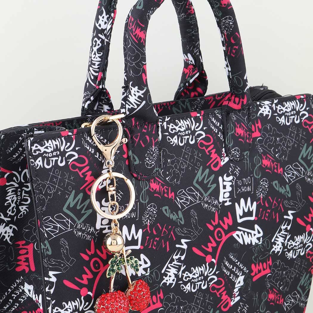 Portachiavi con ciondolo a forma di ciliegia smaltata