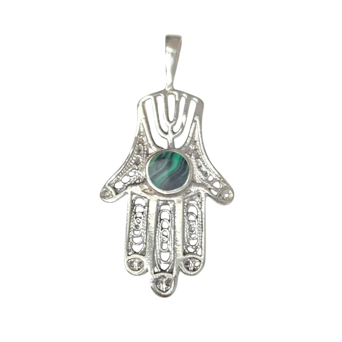 Questa splendida Mezuzah è stata realizzata a mano in Israele in oro giallo 14 carati. La Mezuzah è tridimensionale e presenta un Chai e un motivo a spirale ritagliato nella parte anteriore. La parte posteriore è liscia e il ciondolo è tutto lucido. È un ottimo regalo per il Bar-Mitzvah. È piccolo ma ben fatto. Lunghezza (incluso gancetto): 3/4" Larghezza: 3/8"