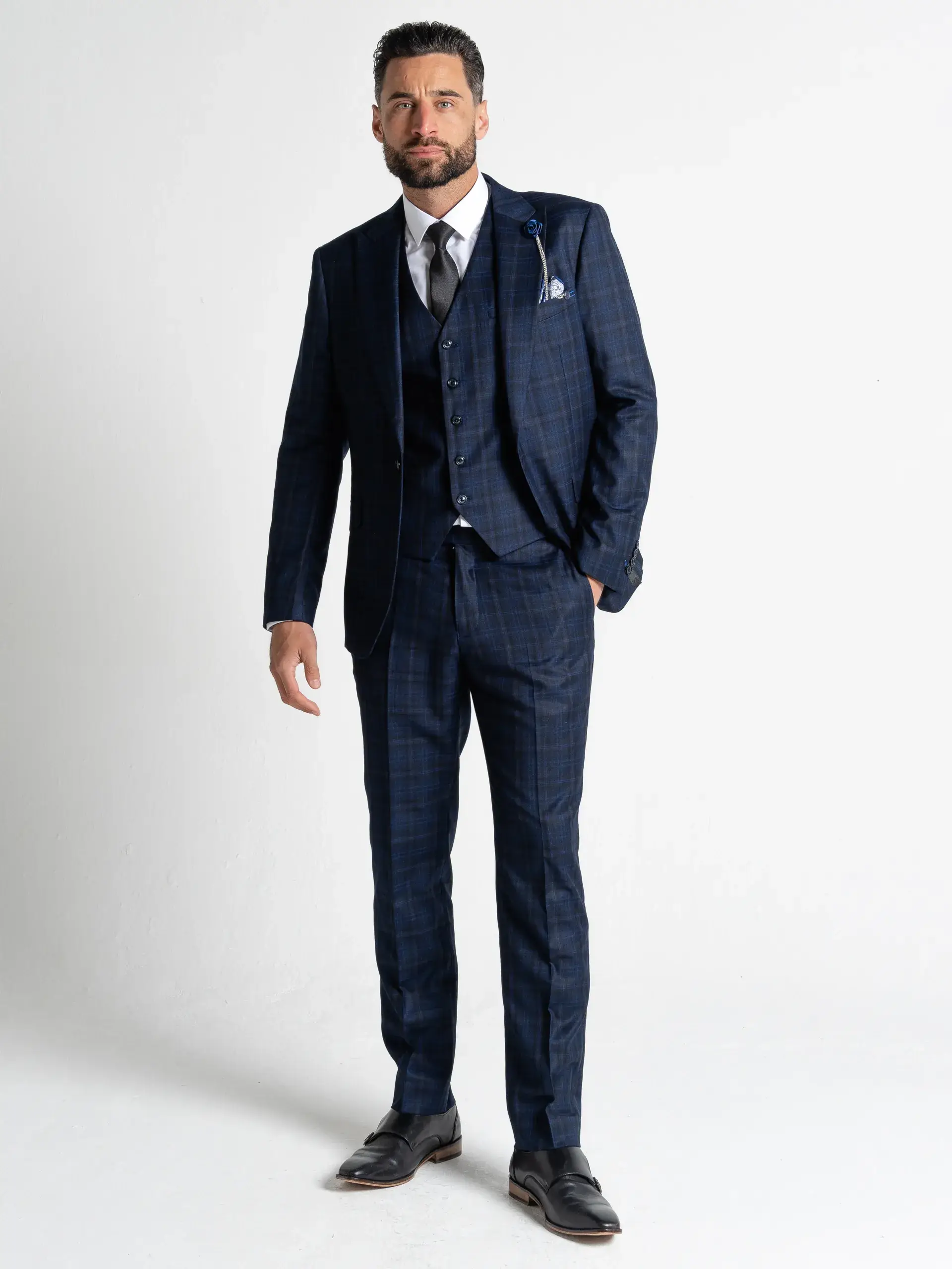 Charlie - Giacca color crema con gilet blu all'ingrosso