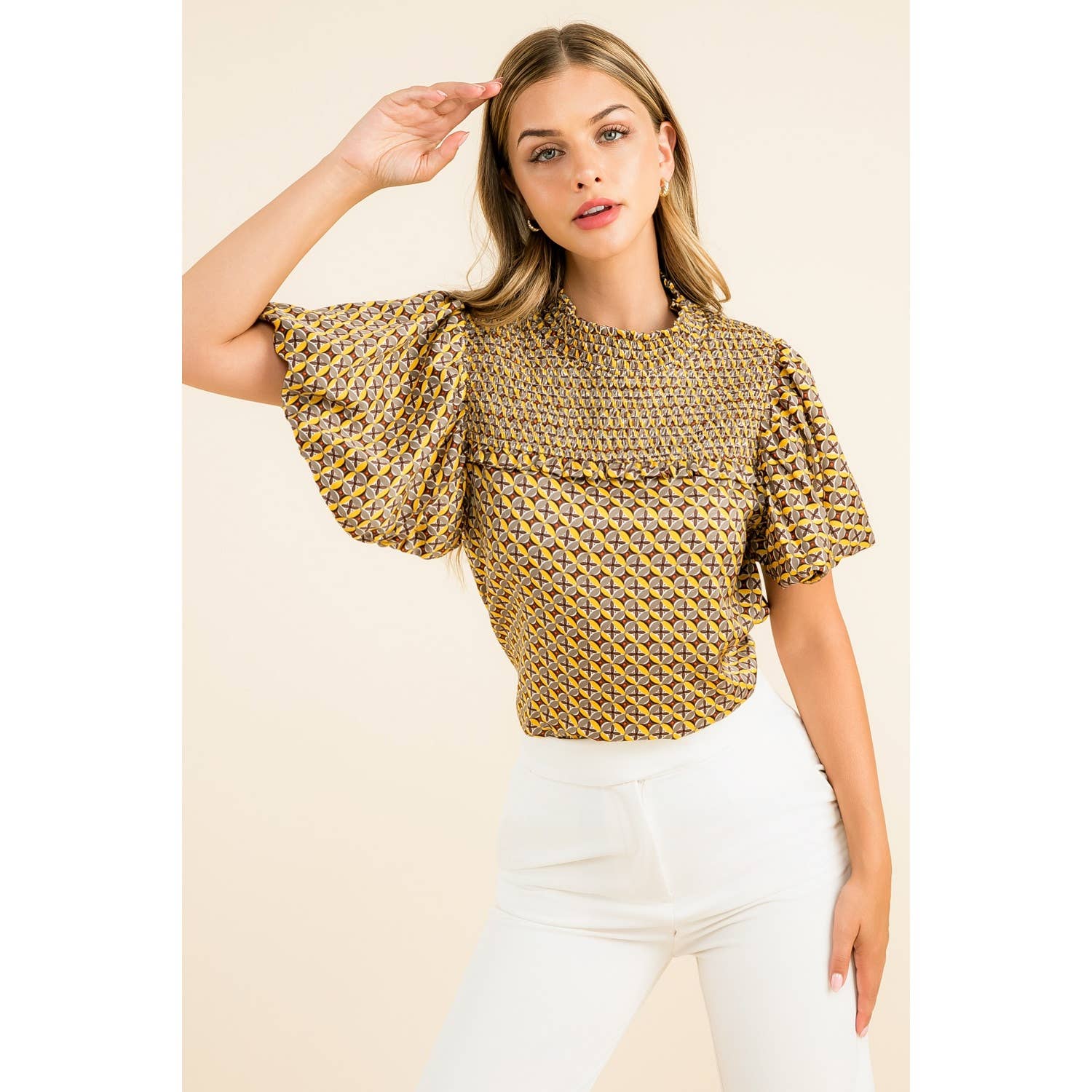 Top con maniche a sbuffo con dettagli testurizzati