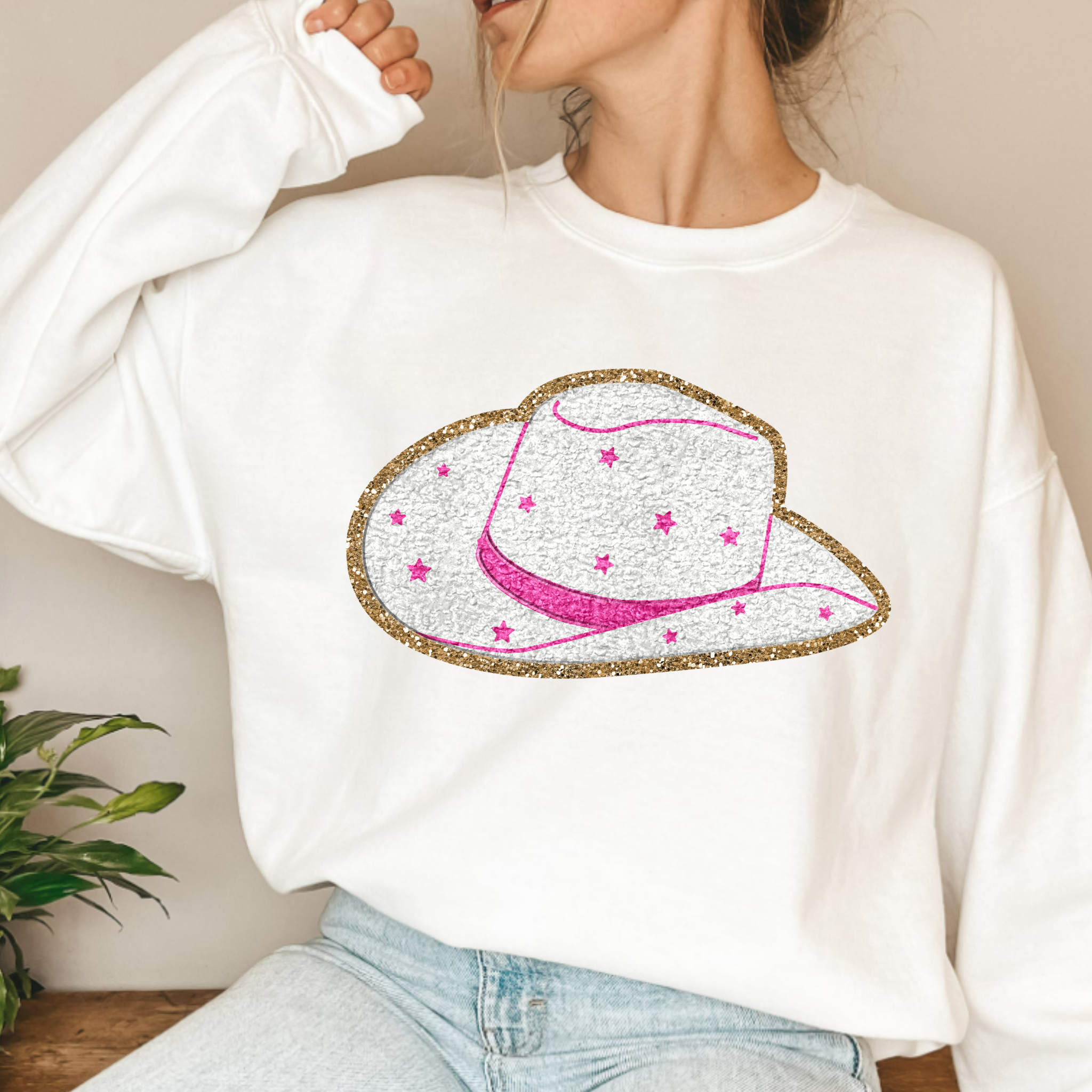 (camicia non inclusa) Cappello da cowboy in ciniglia sintetica, pellicola trasparente trasferibile