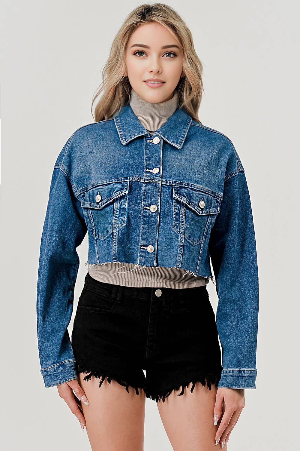 IB9223 - Lavaggio Medio - Giacca di Jeans Crop all'ingrosso