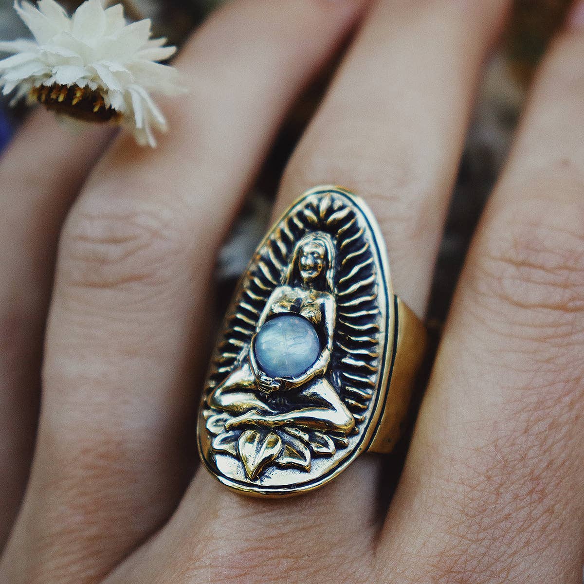Il cinturino è composto da ottone e tutti gli altri dettagli sono in argento sterling. Comodo e resistente ma regolabile. Il cinturino è lungo 5,5 pollici e alto 1,7 pollici. Come sempre, unico nel suo genere e fatto a mano. Regolabile Labradorite estratta in Canada Splendido ma regolabile, questo gioiello è realizzato per una regina. Grande inserto in pietra di labradorite incastonato al centro con due tondi in pietra di luna arrotolati su entrambi i lati. La scritta «Follow your spirit animal» è incisa sulla fascia interna di questo potente bracciale bicolore. Abbiamo simboli solari e lunari intagliati a mano per rappresentare l'equilibrio tra luce e buio. Consenti al tuo animale spirituale di aiutarti a navigare nelle profondità e nelle secche, per guidarti nel viaggio della vita. Pietra di trasformazione, la labradorite è un'utile compagna nel cambiamento, che impartisce forza e perseveranza. Equilibra e protegge l'aura, aumenta la coscienza e fonda le energie spirituali. Eccellente per rafforzare l'intuizione e promuovere le capacità psichiche.