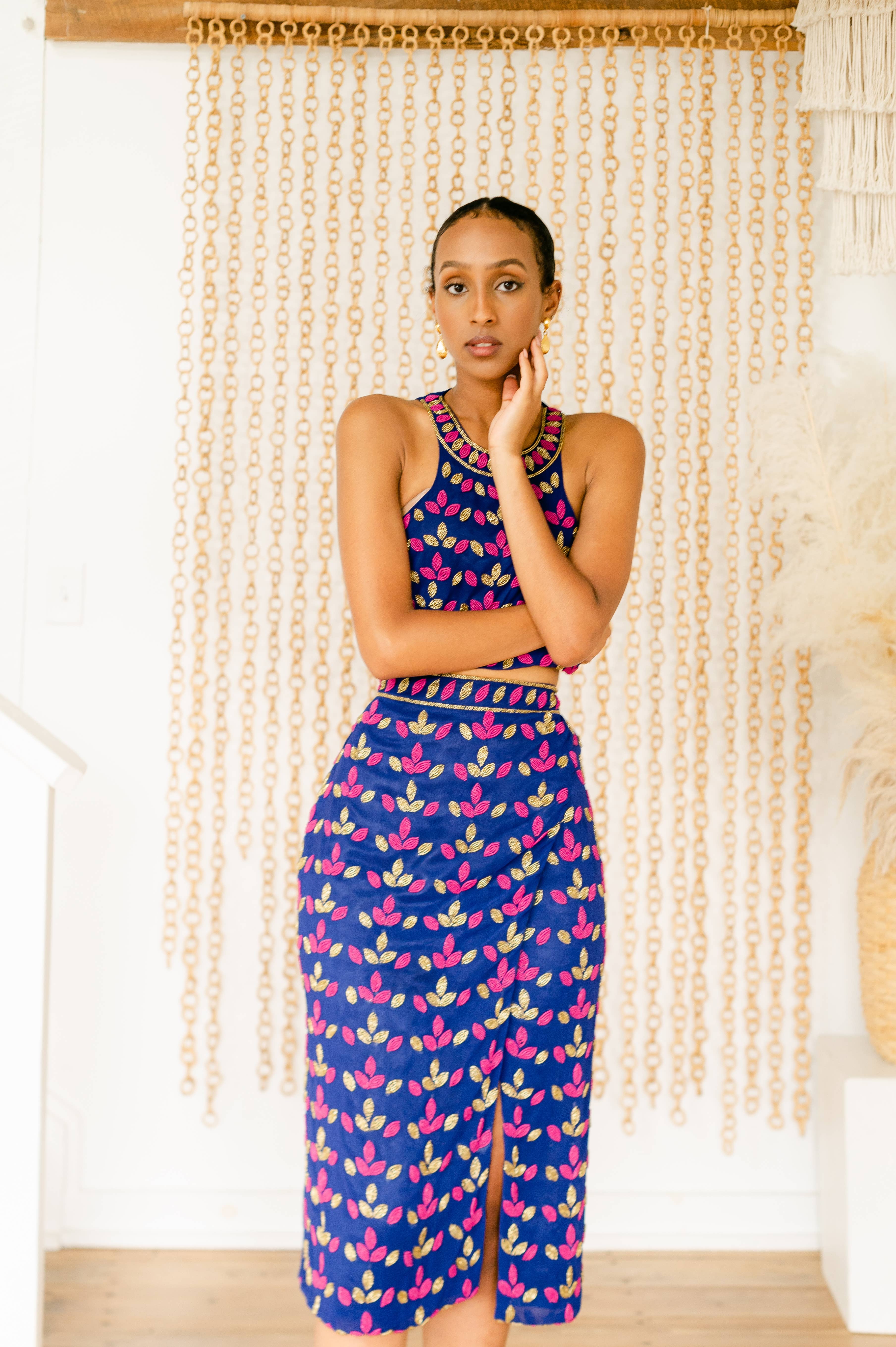 Abbinalo a un paio di scarpe da ginnastica o tacchi dorati. Non puoi sbagliare con l'abito kimono. Chiffon bianco completamente foderato con perline a motivo floreale su tutto l'abito. Si avvolge su misura e può essere annodato davanti o dietro. Disponibile anche in viola. - La modella indossa una taglia S - Materiali: chiffon bianco, perline dorate e arancioni. - Progettato negli Stati Uniti. Fatto a mano in India.