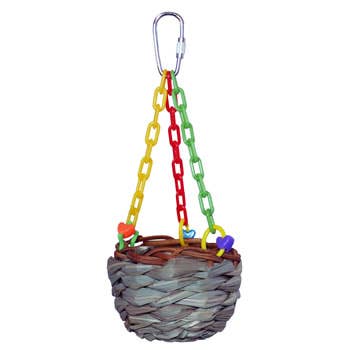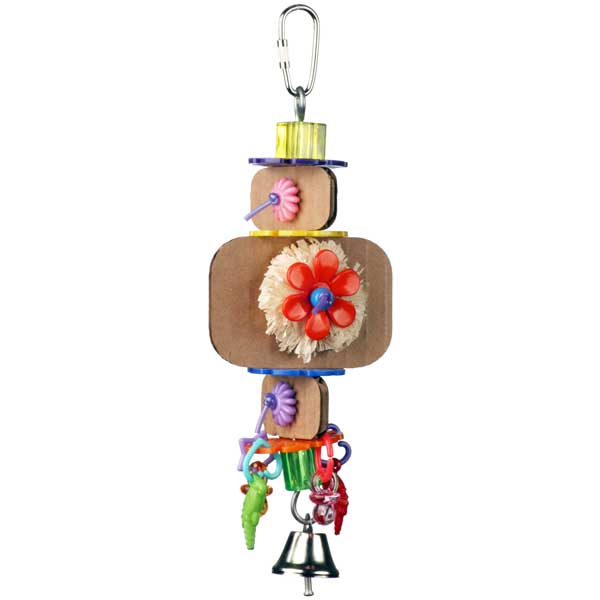 Bonnie Bell è un adorabile giocattolo per uccelli realizzato con un cappello di paglia adornato con fiori, perline e pompon. Un campanello tintinnante aggiunge divertimento.