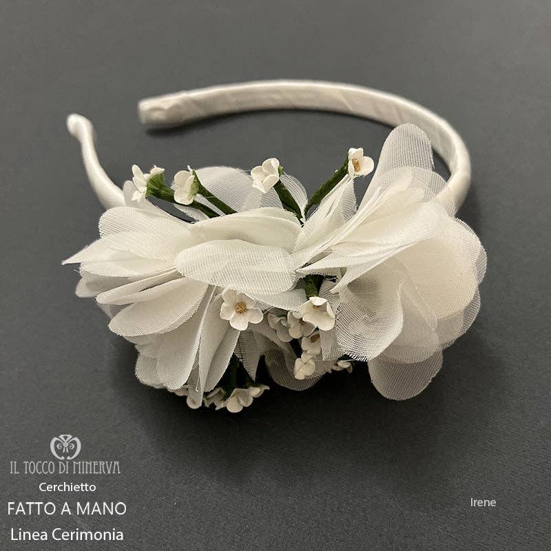 Diadema con fiori bianchi o champagne per bambine dai 2 anni