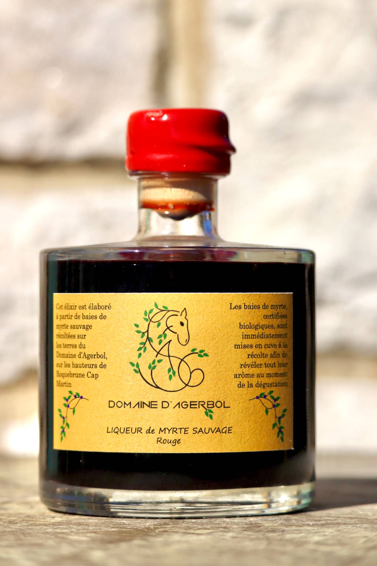 Un liquore prodotto da Soleia Nice in collaborazione con il Domaine d'Agerbol. Il liquore al mirto verde è ottenuto dalle foglie di mirto selvatico. Questa pianta dal sapore particolare viene raccolta al Domaine d'Agerbol, un'azienda agricola che offre una produzione interamente biologica sulle alture di Roquebrune Cap-Matin. Una novità che offre una miscela sottile caratterizzata dall'equilibrio tra l'intensità del gusto e le sfumature distintive delle foglie del mirto. Il risultato è un sapore delicato ed erbaceo. Questo liquore al 38% rivela il profumo naturale del mirto e l'aroma della macchia mediterranea.