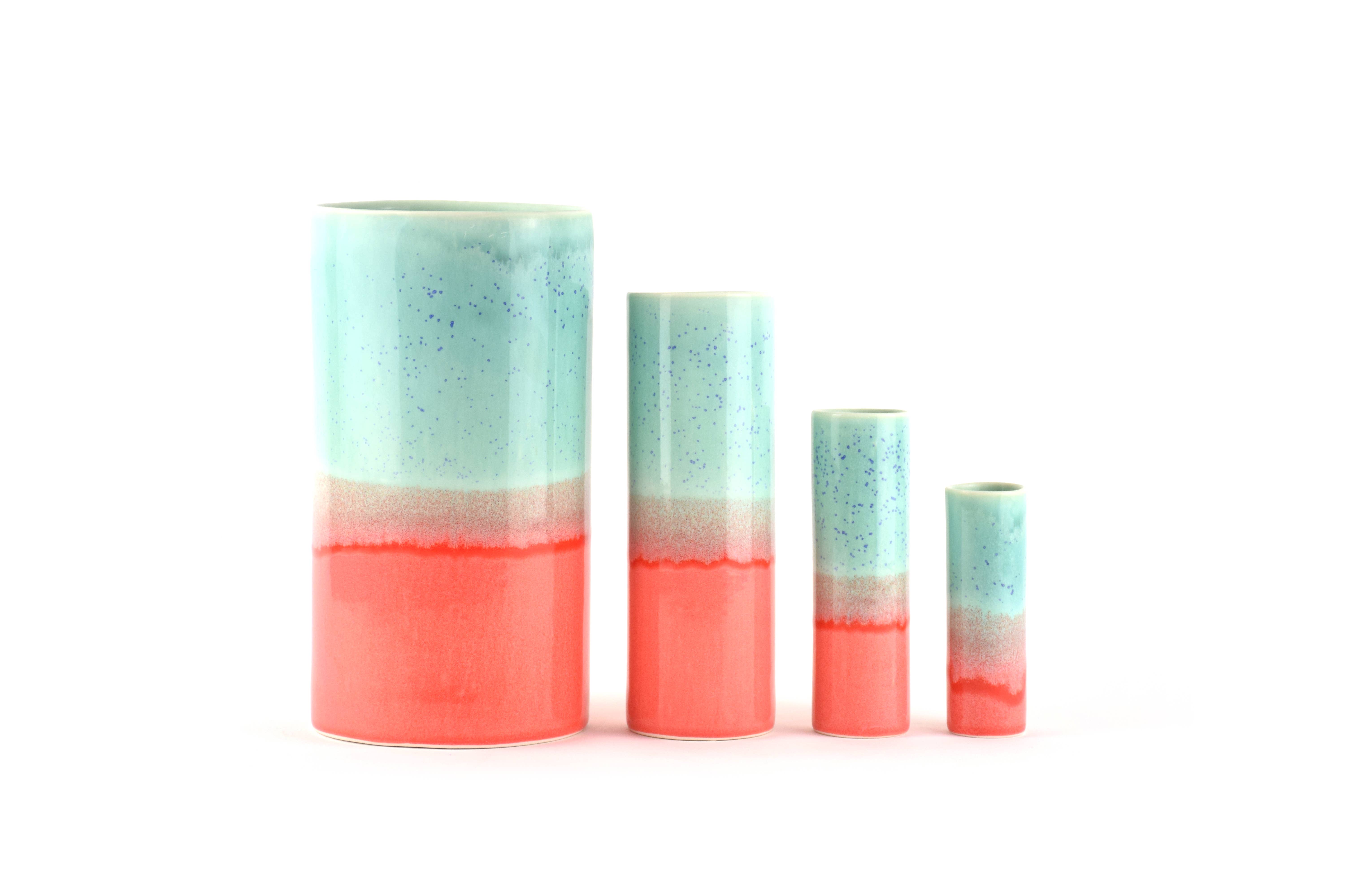 Progettato da Yuta Segawa Porcellana smaltata Slip cast - fuso a mano nel nostro studio londinese Dimensioni - Piccolo: circa Ø 28 mm, H 100 mm Medio: circa Ø 36 mm, H 130 mm Grande: circa Ø 56 mm, H 178 mm Ogni pezzo può differire leggermente.