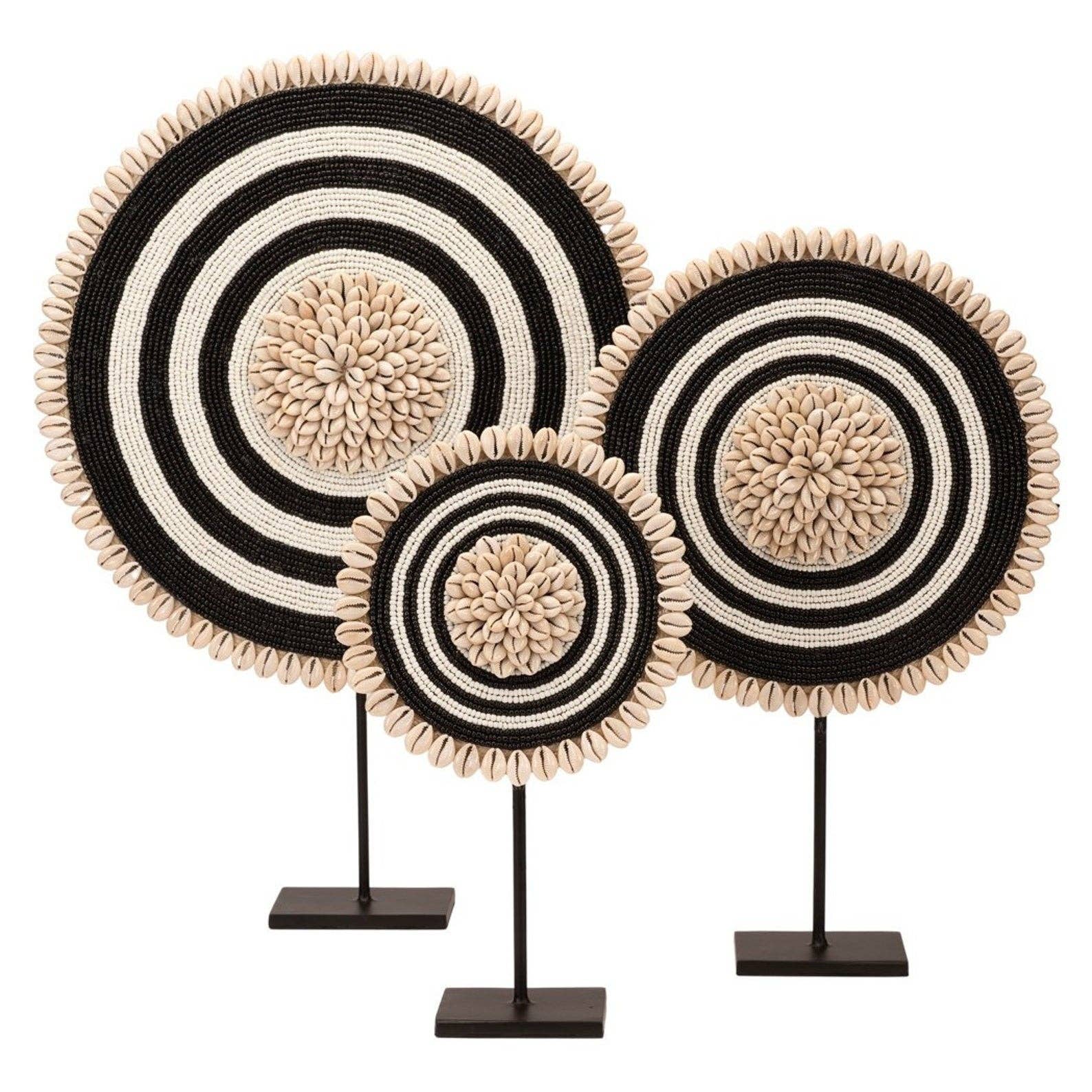 Tovagliette rotonde in rattan con un bellissimo dettaglio in conchiglia di ciprea lungo il bordo. Disponibile nei colori nero, bianco, marrone, naturale e grigio Diametro: 33 cm con le conchiglie Confezione standard, set da 4 pezzi Small Family 6 pezzi Realizzato a mano da artigiani indonesiani locali. Poiché gli articoli sono realizzati a mano con materiali completamente naturali, ci saranno lievi variazioni per rispecchiare la loro unicità , ma li adorerai comunque