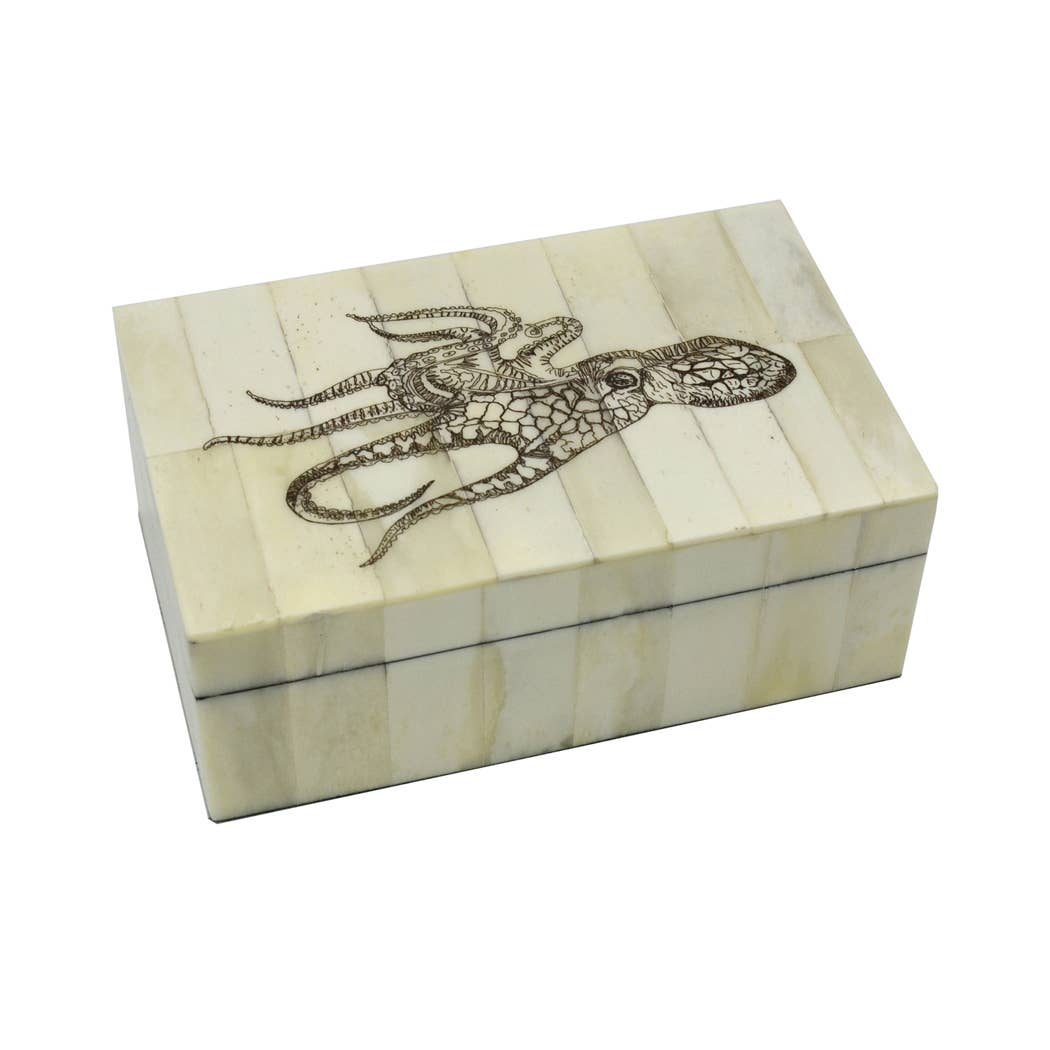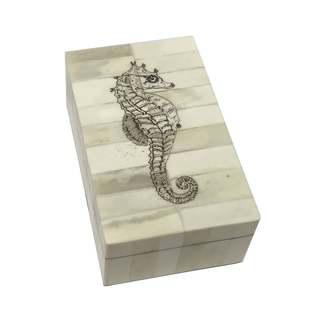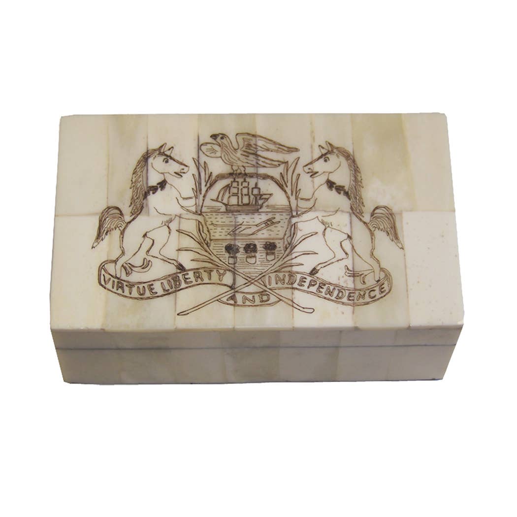 Iniziato dai marinai che lavoravano sulle navi baleniere del New England, lo scrimshaw potrebbe essere l'unica forma d'arte nata in America. Il nostro scrimshaw è creato incidendo diversi disegni su osso di bue. Sigillato con polvere ossea e resina epossidica, laccato e lucidato a mano. Perfetto per contenere gioielli e ricordi. Questo NON è un prodotto in resina. - Piastrelle naturali e autentiche in osso di bue intarsiate su una resistente base in legno composito. - Scatola in osso fatta a mano con riproduzione antica 5-1/4" x 3-1/4" x 2" - Dimensioni interne: 4-1/4» x 2-1/4» x 1-1/2» - Coperchio e interno rimovibile lucidati a mano, foderati in feltro - Coperchio rimovibile e interno della scatola foderati in feltro verde - Inciso negli Stati Uniti!