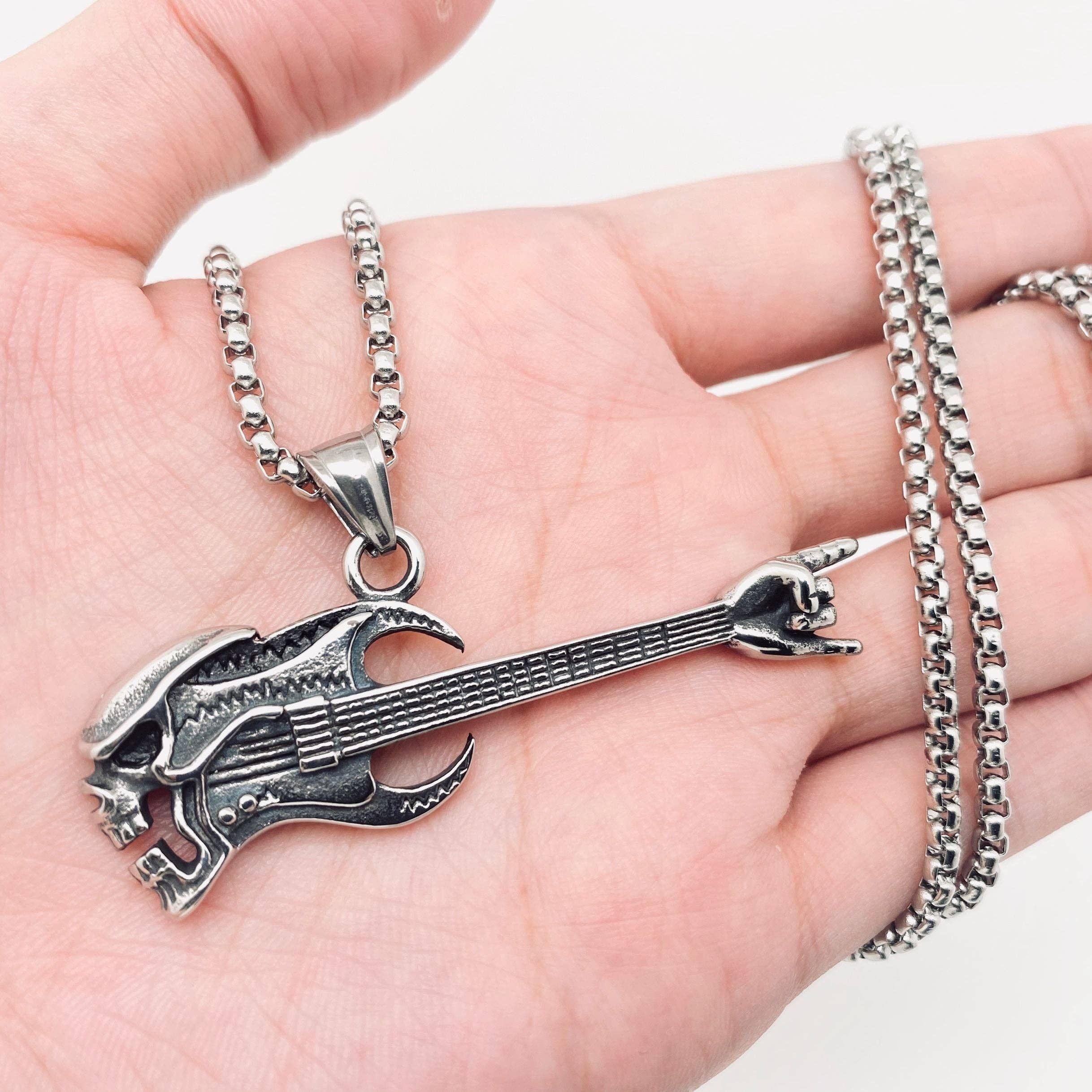 Collana con ciondolo per chitarra elettrica stile rock - MJ