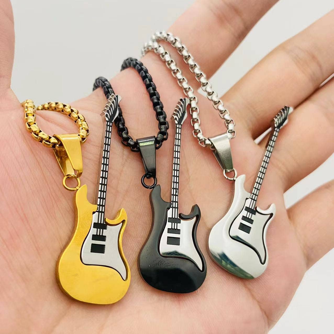Collana con ciondolo per chitarra elettrica stile rock - MJ all'ingrosso